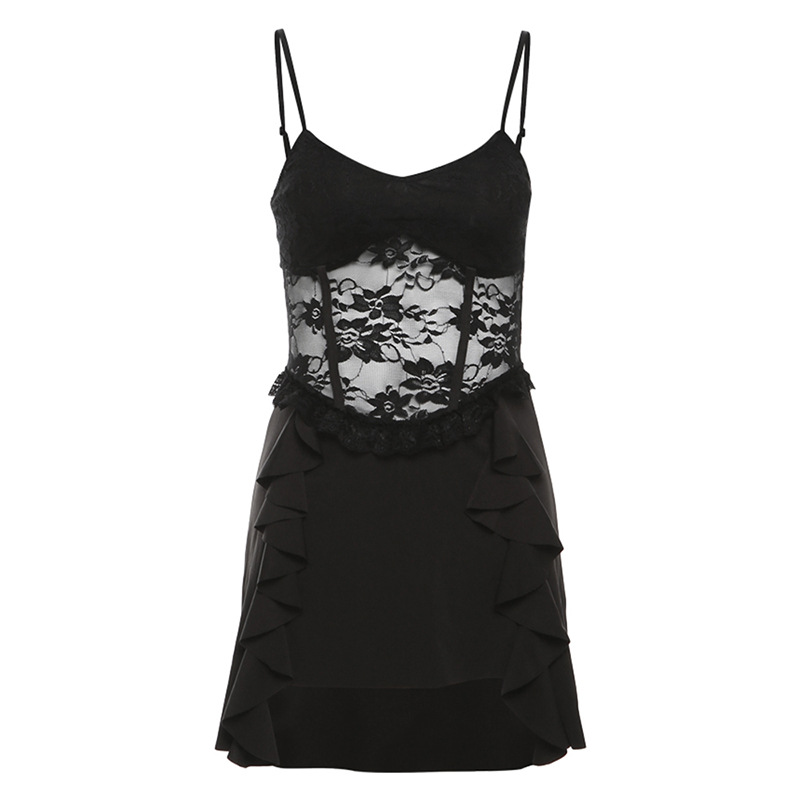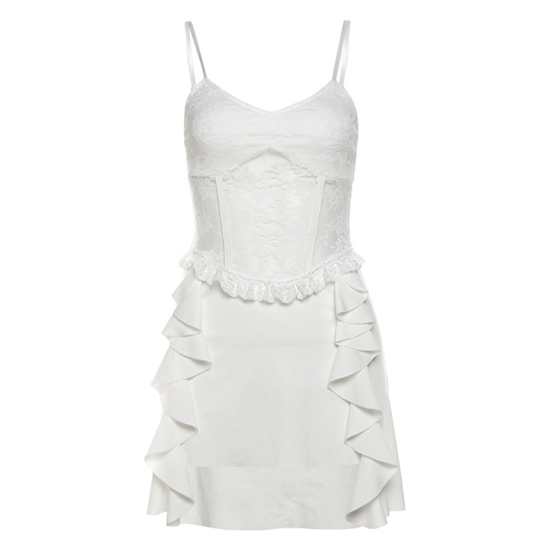 欧美风夏季新款女装清新甜美蕾丝镂空收腰包臀纯色连衣裙