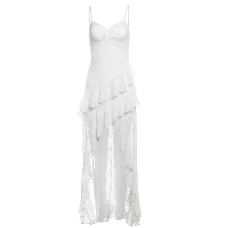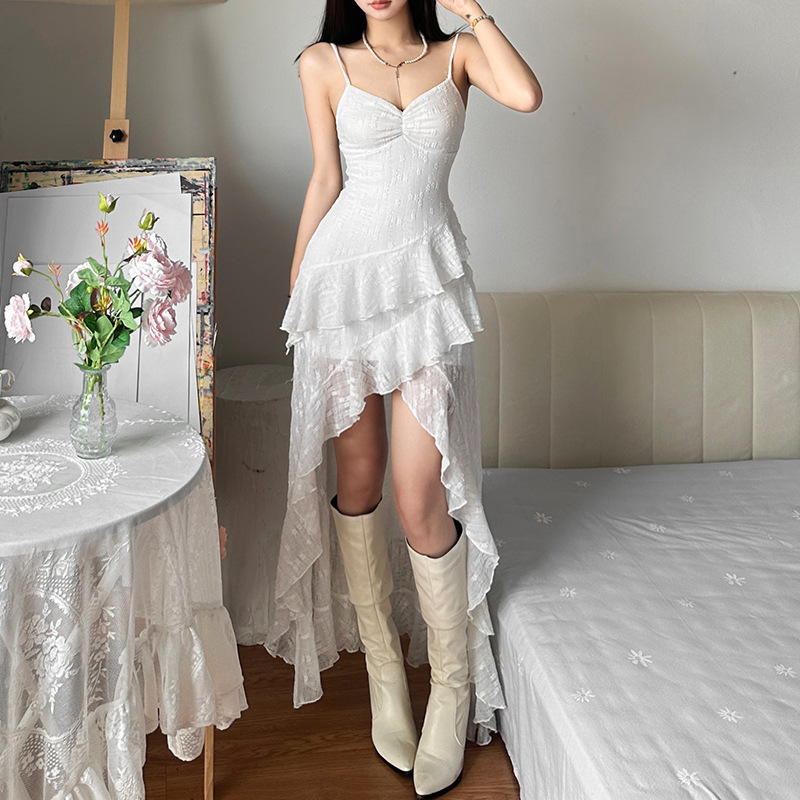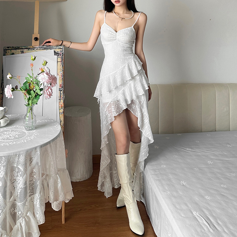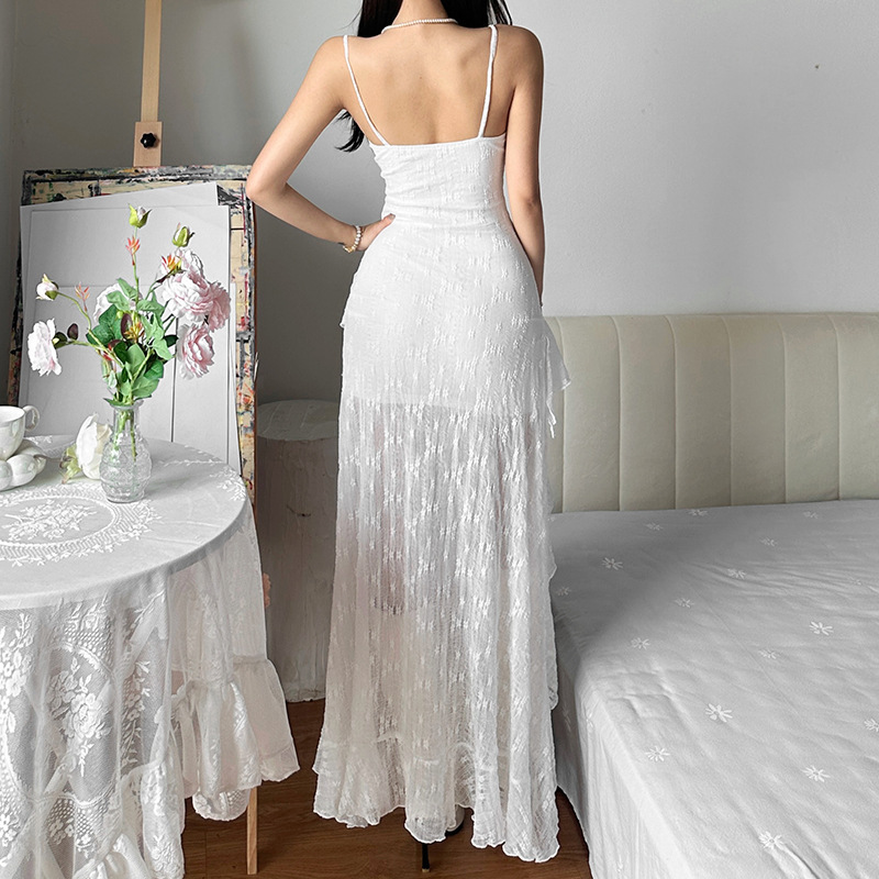 复古改良白色旗袍裙女夏季新款法式高级感提花连衣裙女长裙