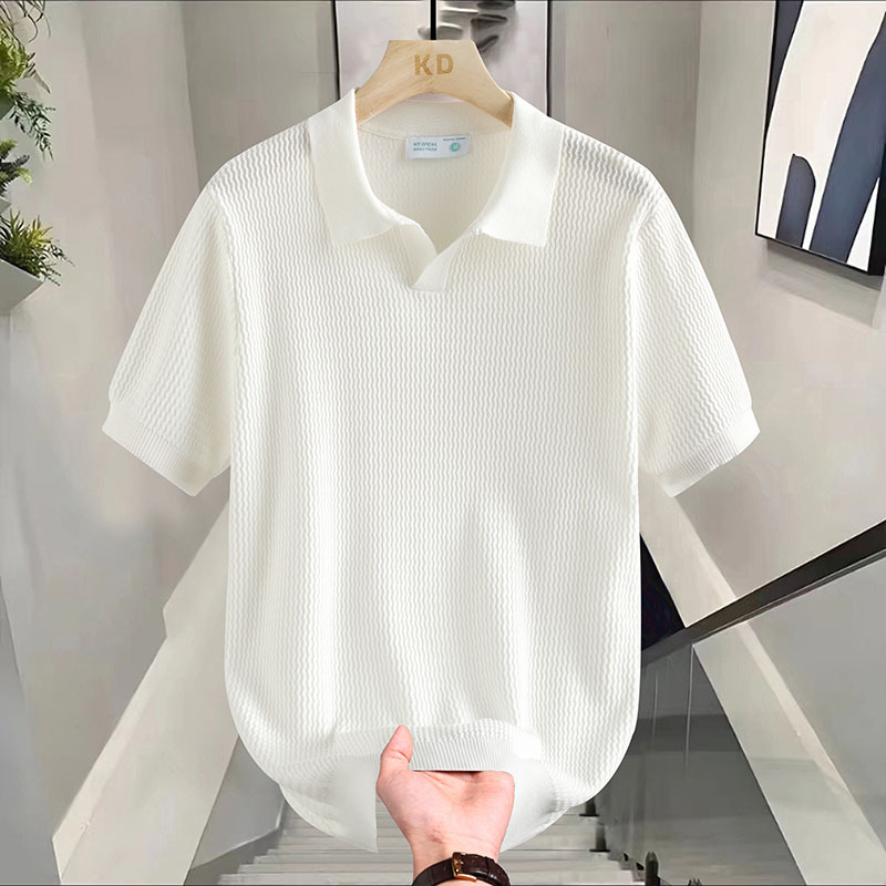 夏季男士冰丝短袖毛衣青少年休闲polo衫翻领纯白T恤