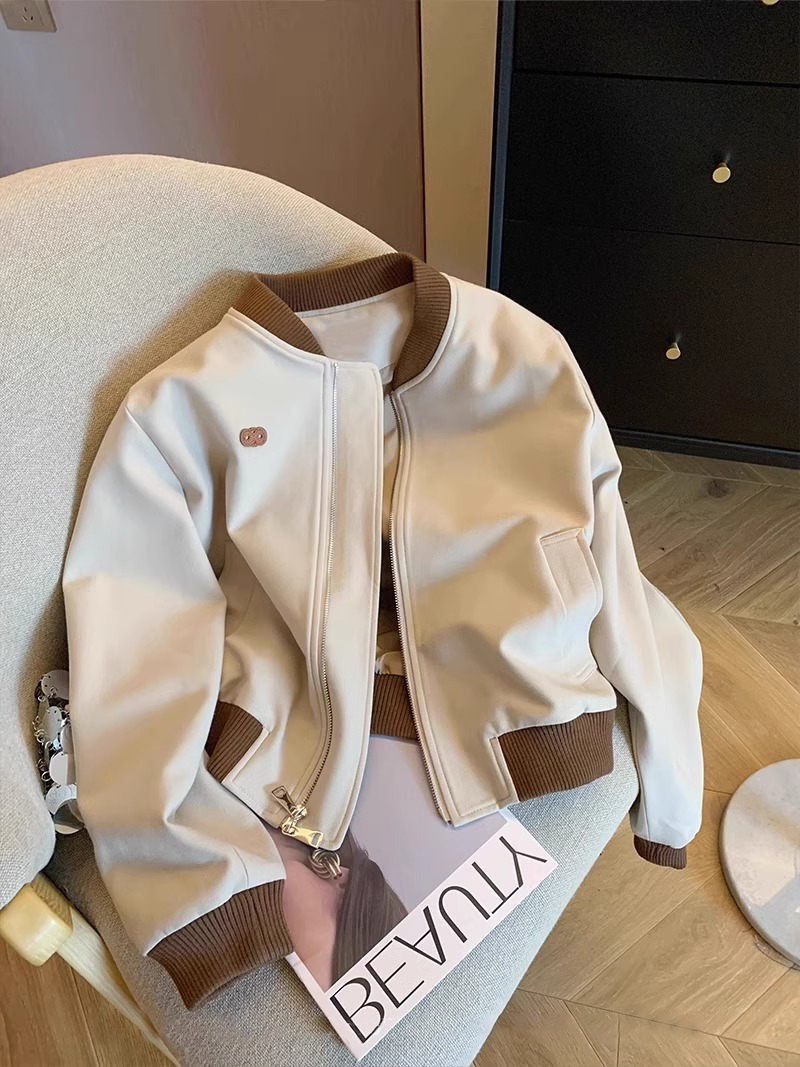 别致撞色拼接夹克短外套男女春秋韩系学院风复古棒球服