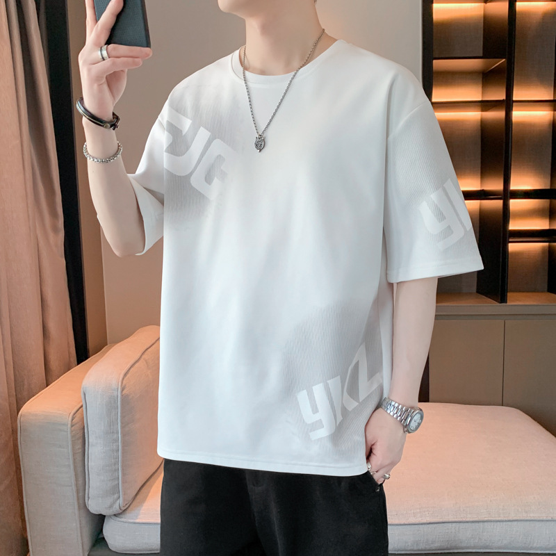 2025夏季新款港风字母印花大码短袖t恤男情侣宽松加肥加大上衣男