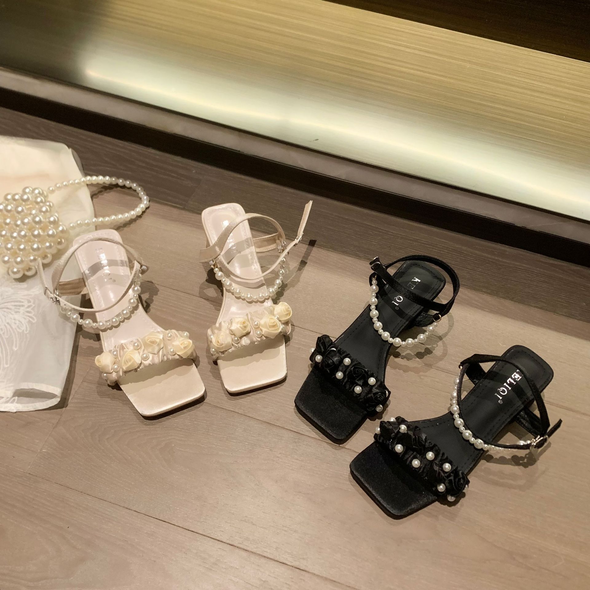 少女甜美珍珠花卉配裙子鞋气质露趾一字扣带时装凉鞋凉拖夏