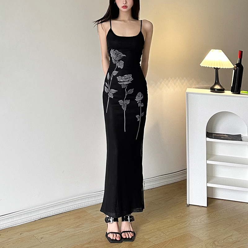 欧美风春季新款女装网纱吊带裙显瘦修身包臀收腰连衣裙