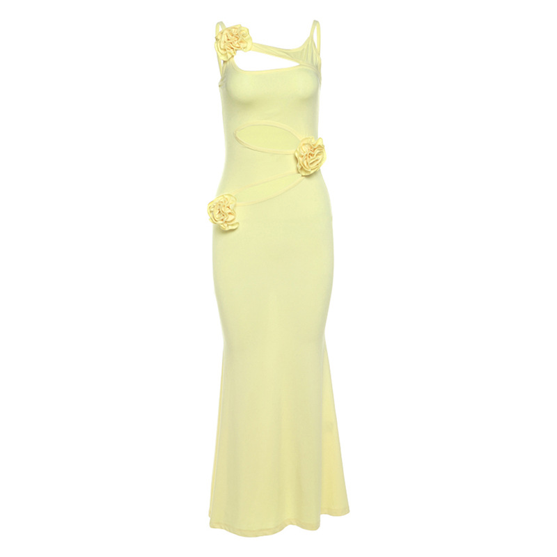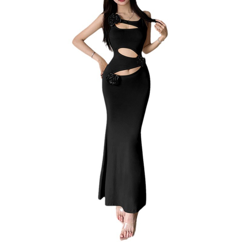 欧美风夏季新款女装立体花装饰设计感镂空修身包臀连衣裙