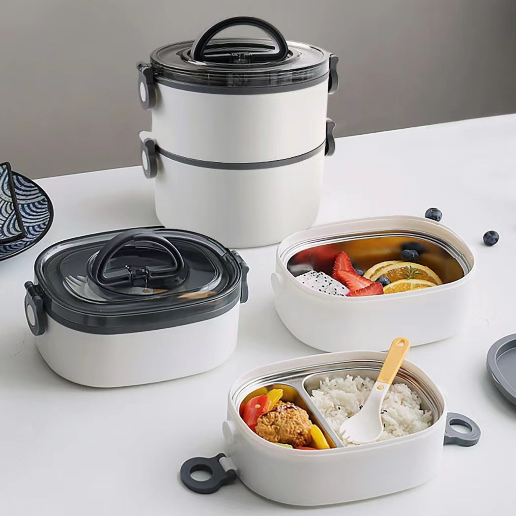 创意手提便携椭圆形多层隔热日式饭盒便当盒保温餐盒304不锈钢