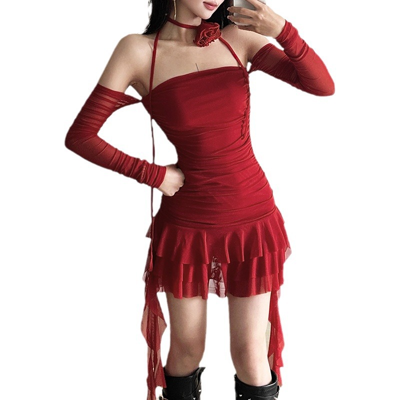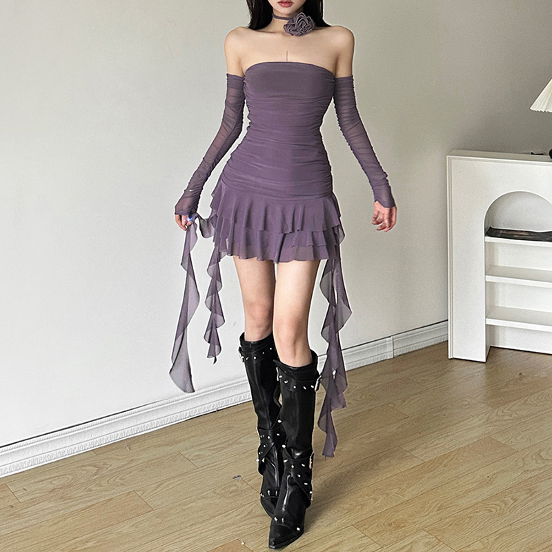 欧美风夏季新款女装纯色性感一字领时尚绑带包臀连衣裙