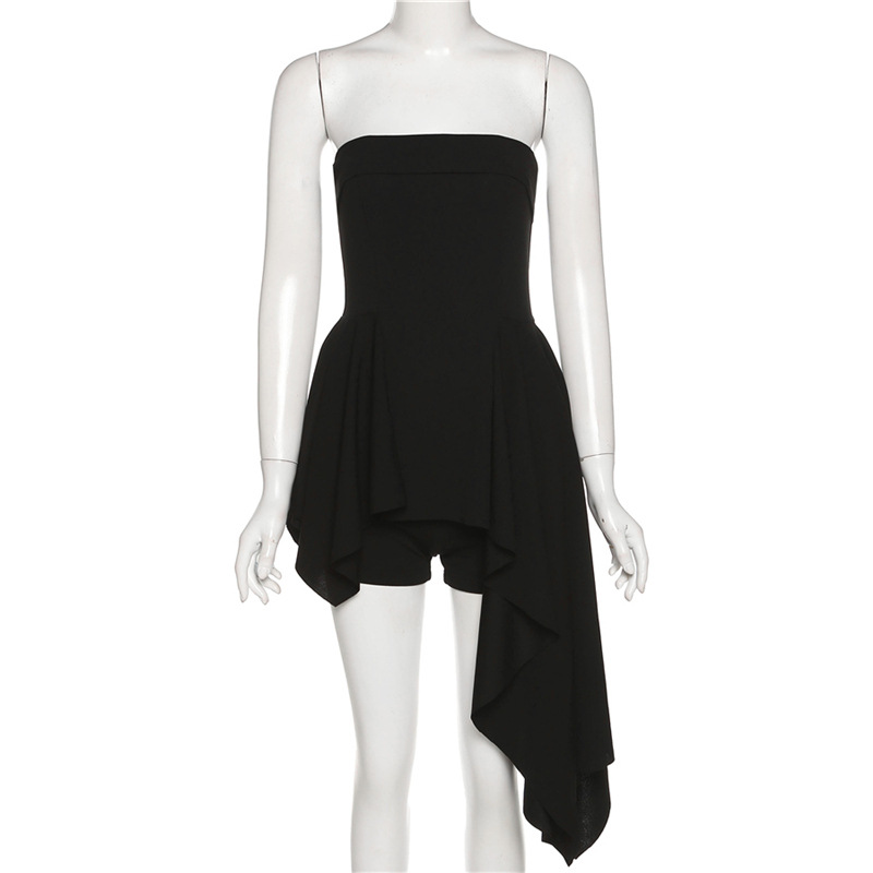 欧美风春夏新款女装纯色性感一字领裹胸时尚高腰不规则连衣裙