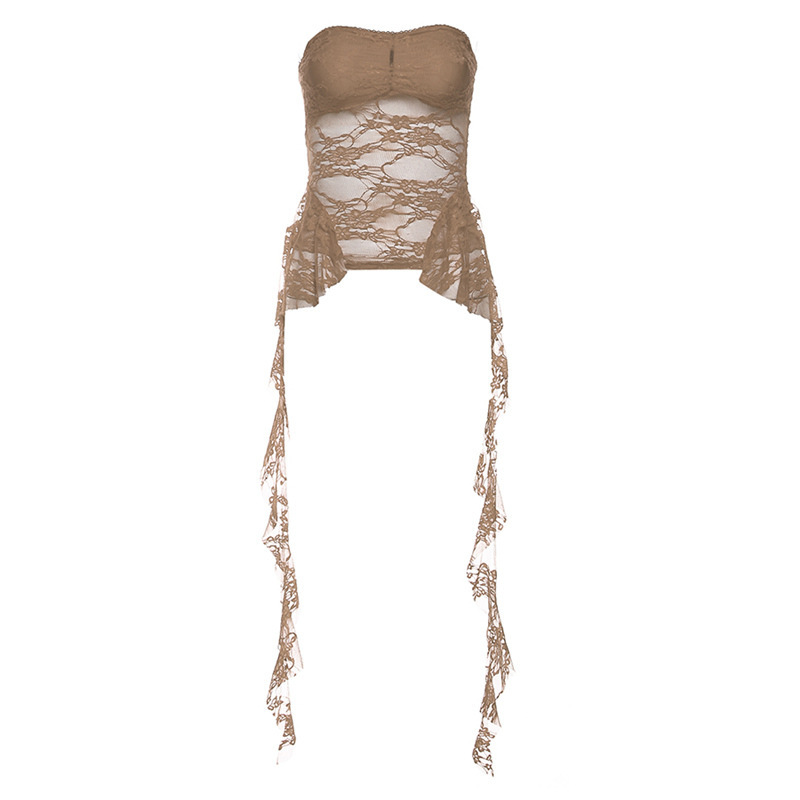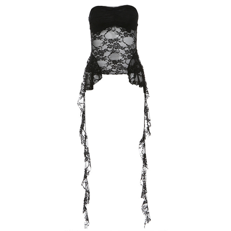 欧美风夏季新款女装一字领蕾丝裹胸网纱露脐修身小背心