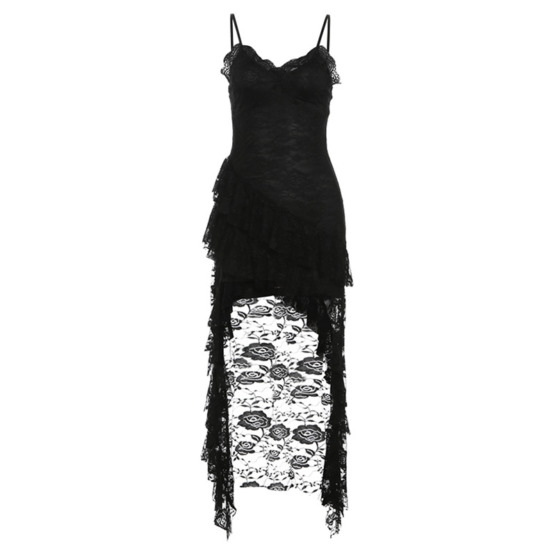 欧美风夏季新款女装纯欲风性感辣妹镂空花边包臀连衣裙