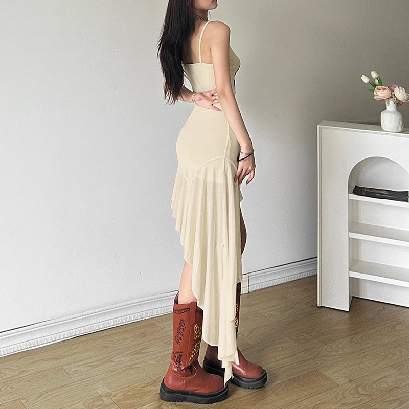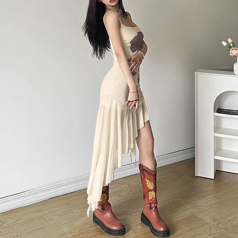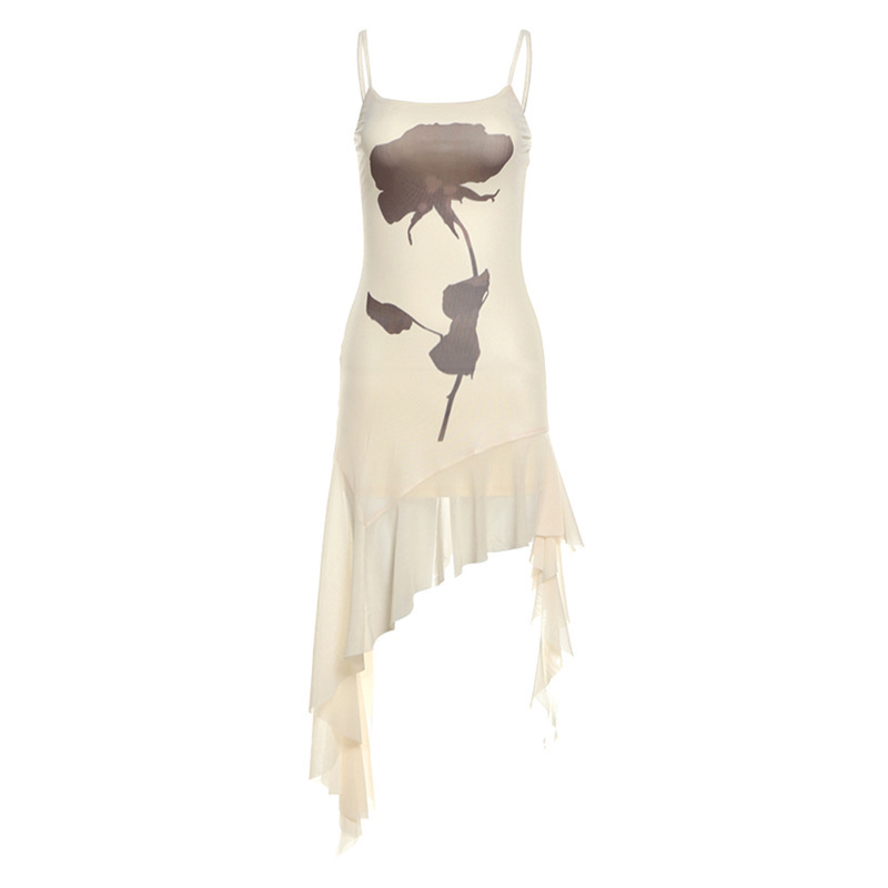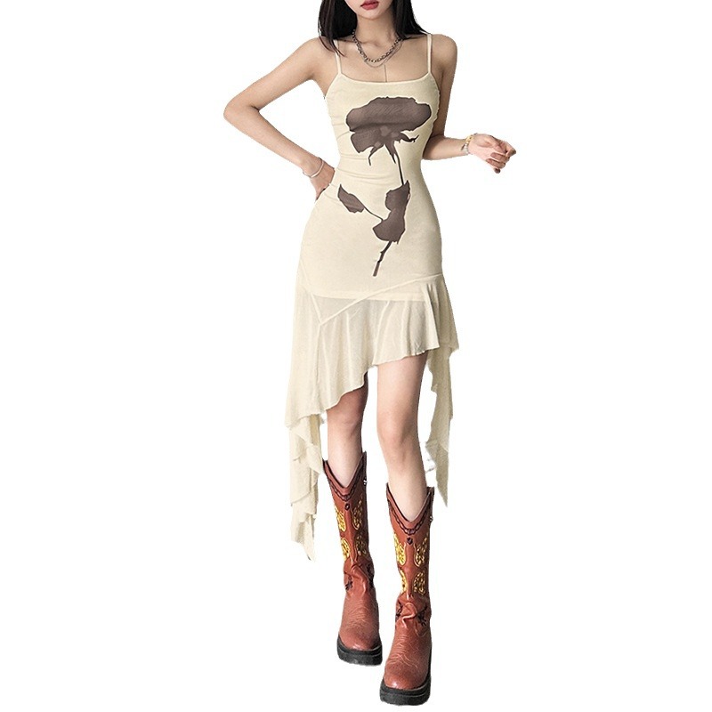 欧美风夏季新款女装印花修身高腰时尚吊带性感露背连衣裙