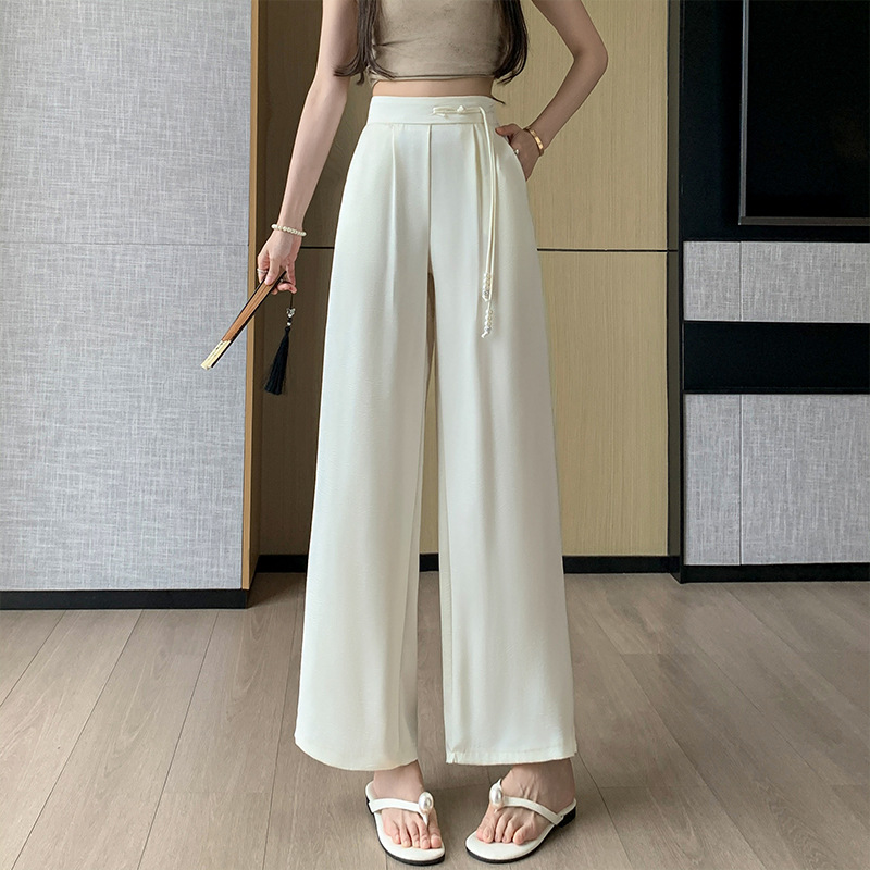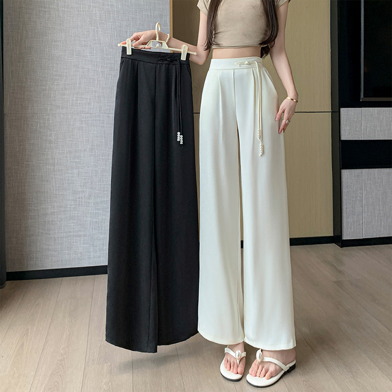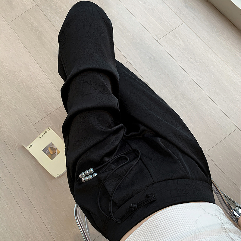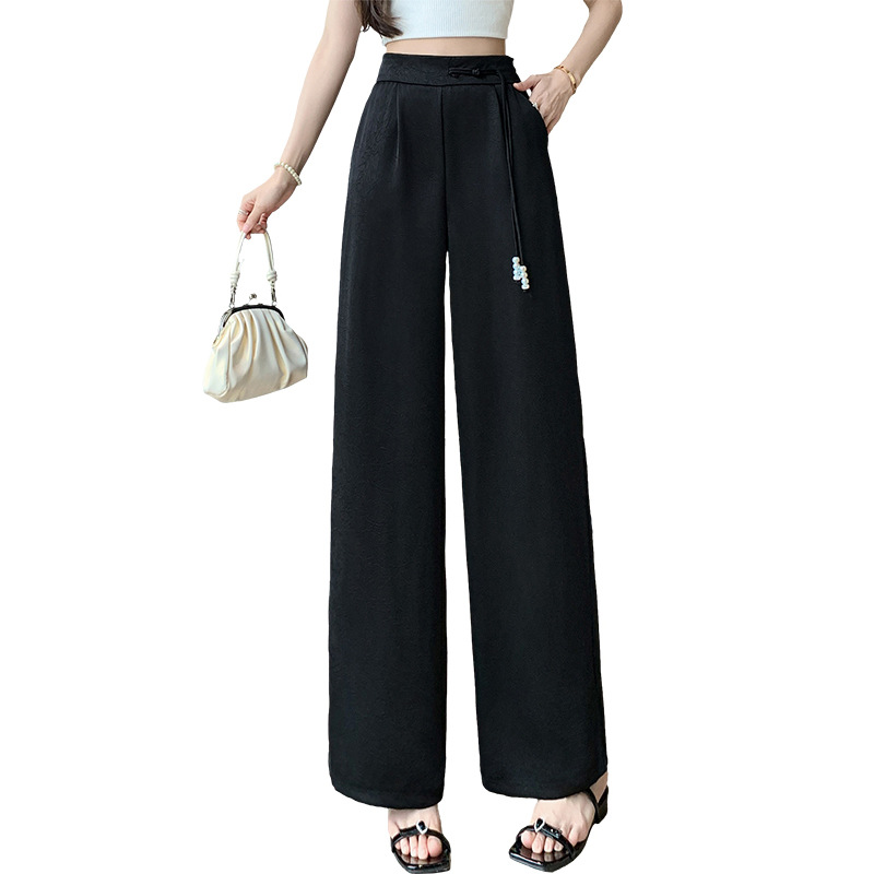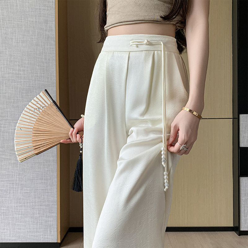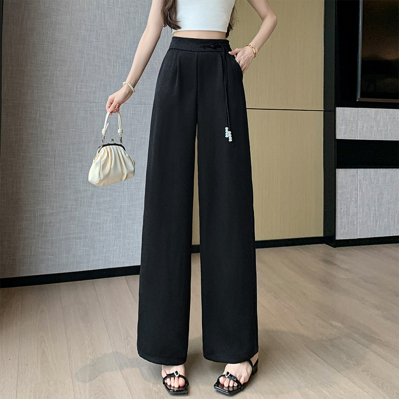 夏季新款新中式国风缎面提花冰丝裤西装直筒裤薄款阔腿裤长裤