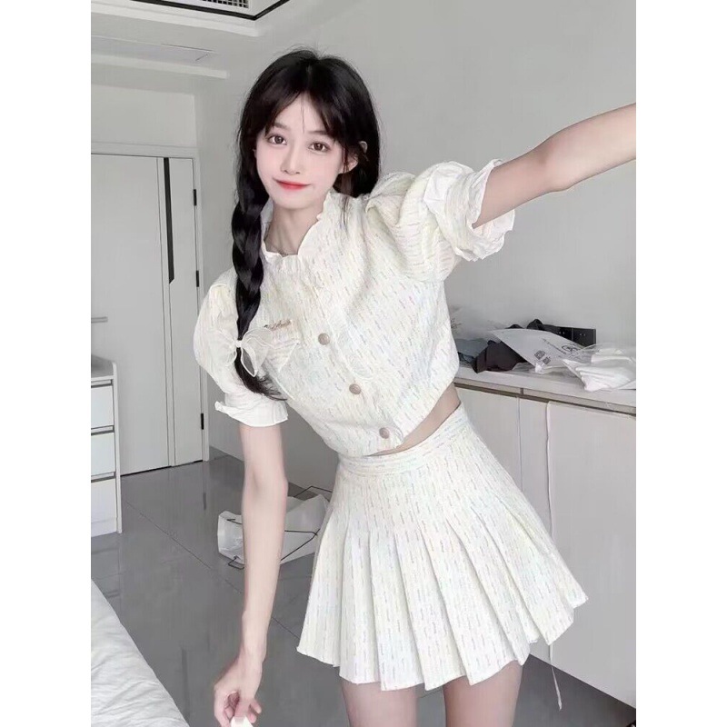 实拍学院风可爱甜美套装甜酷女装小个子小香风法式桔梗两件套裙子