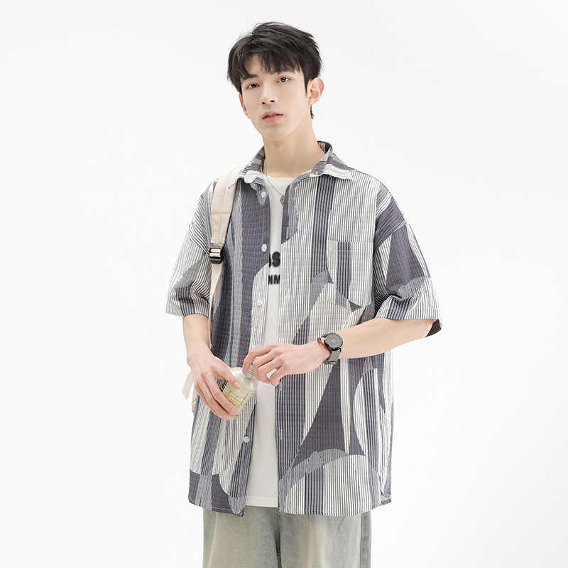 夏威夷度假沙滩夏季冰丝短袖衬衫男士花衬衣薄款潮流宽松半袖寸衫
