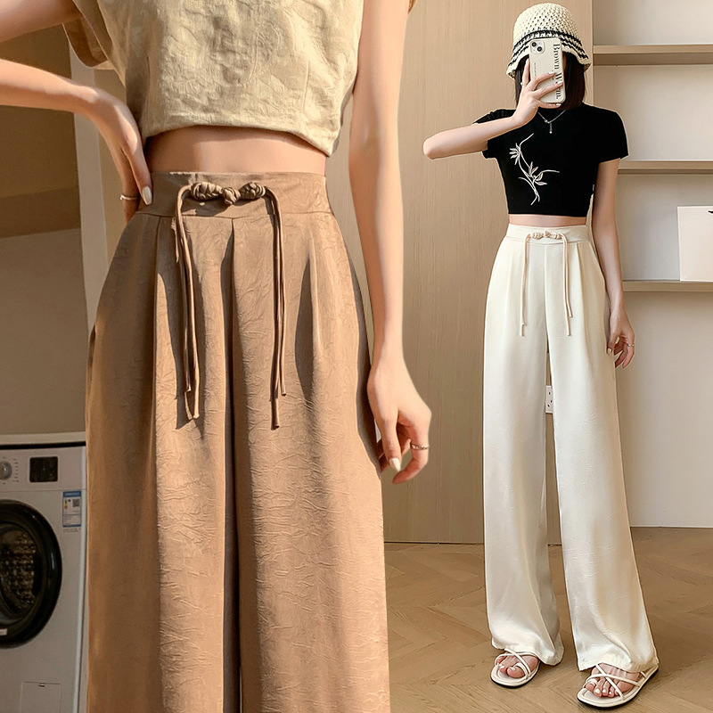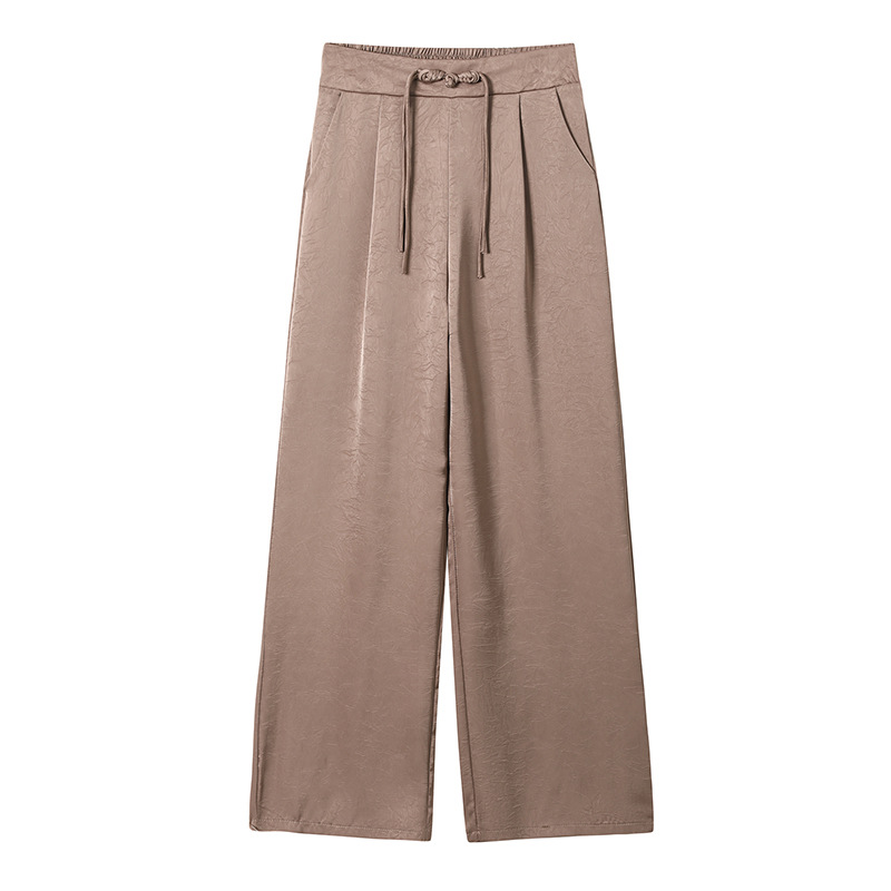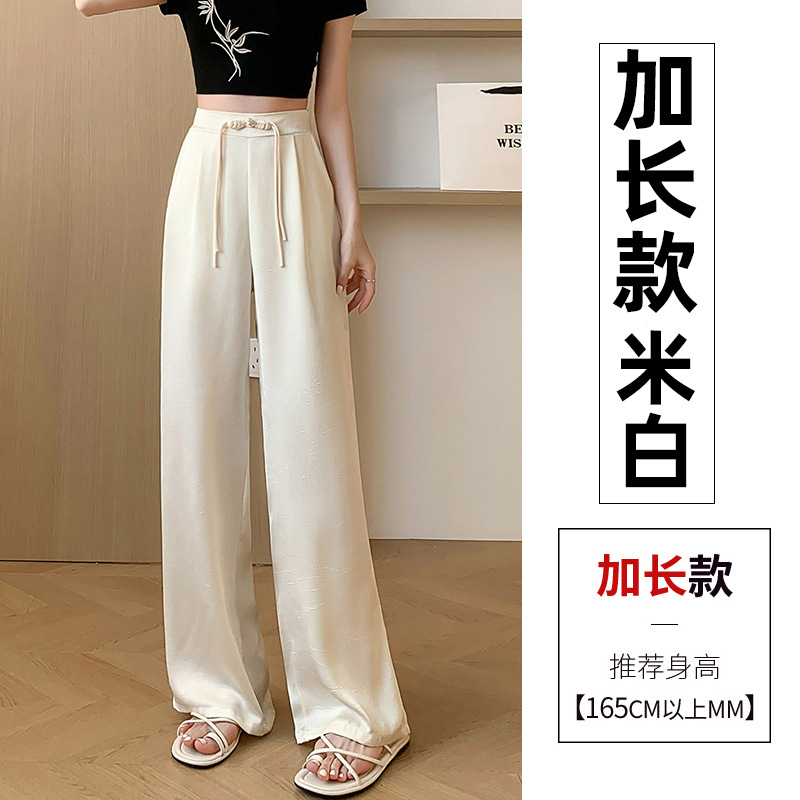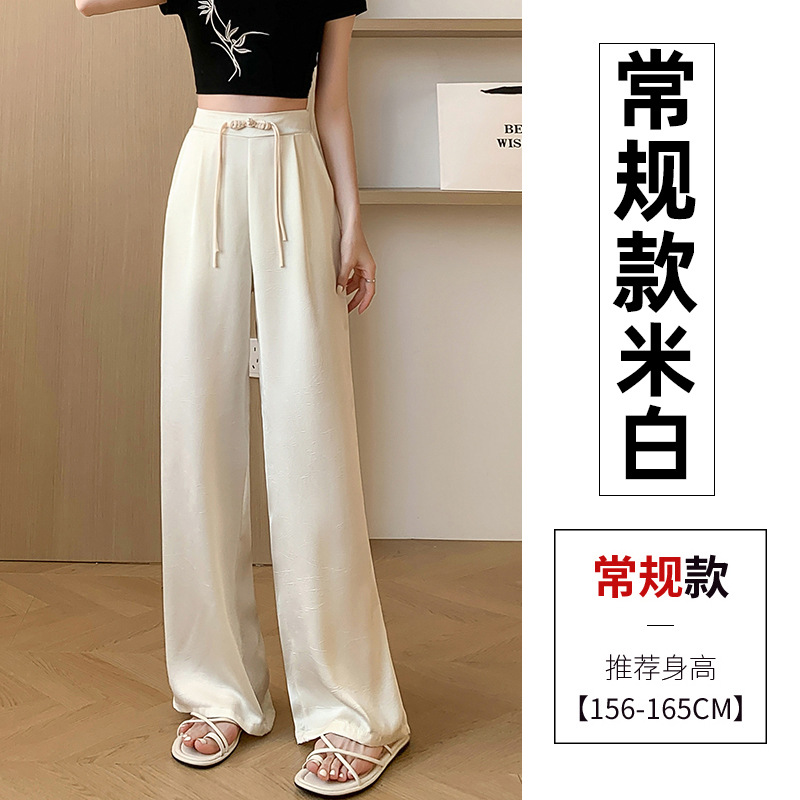 新中式国风缎面提花阔腿裤女春夏新款高腰显瘦直筒拖地休闲裤