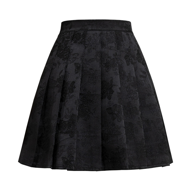 新中式提花百褶裙半身裙女夏新款高腰显瘦防走光a字裙短裙女