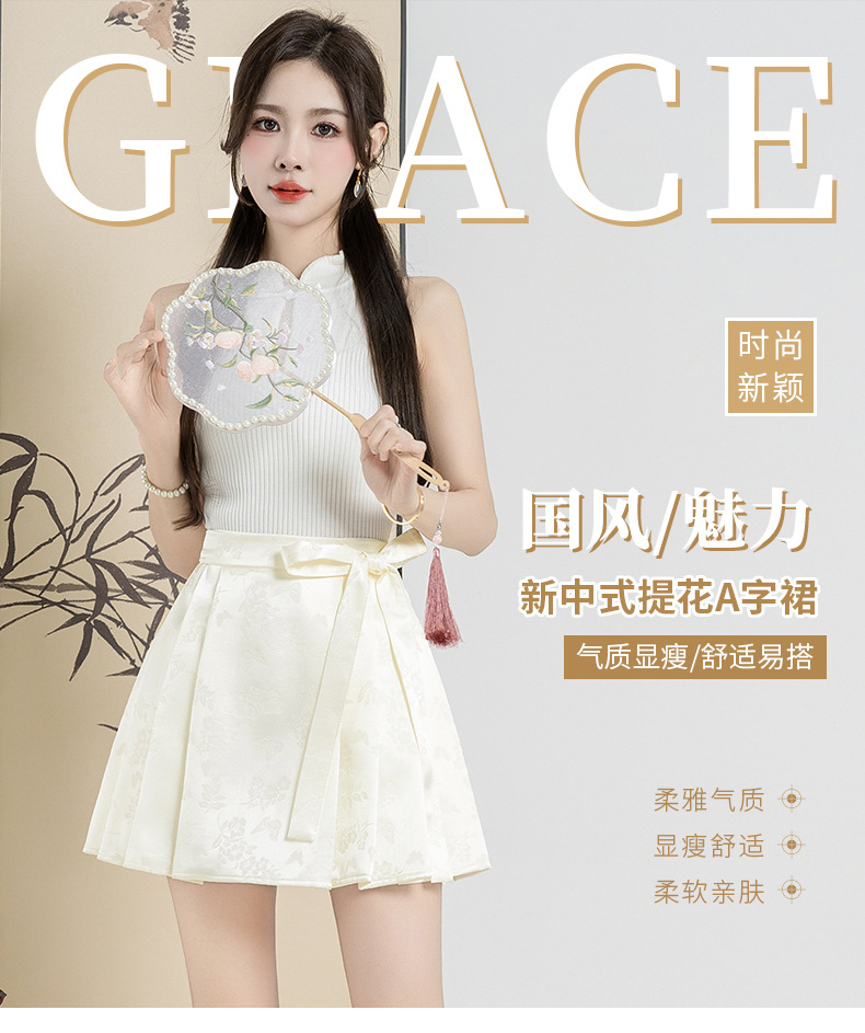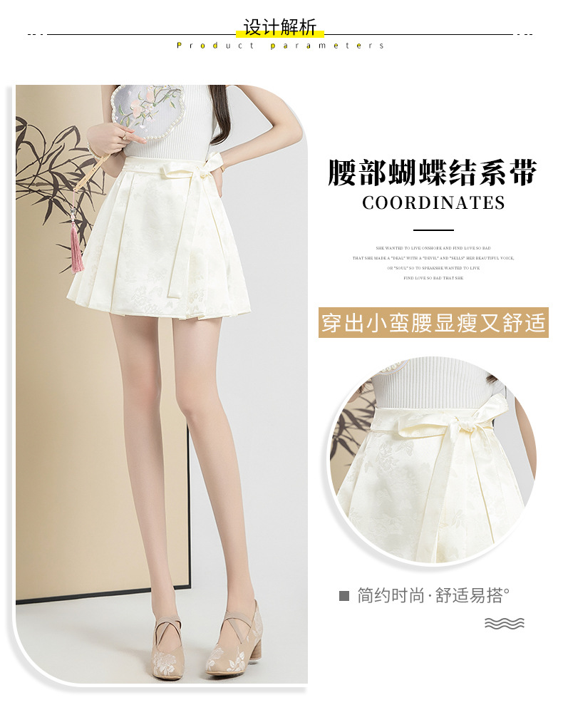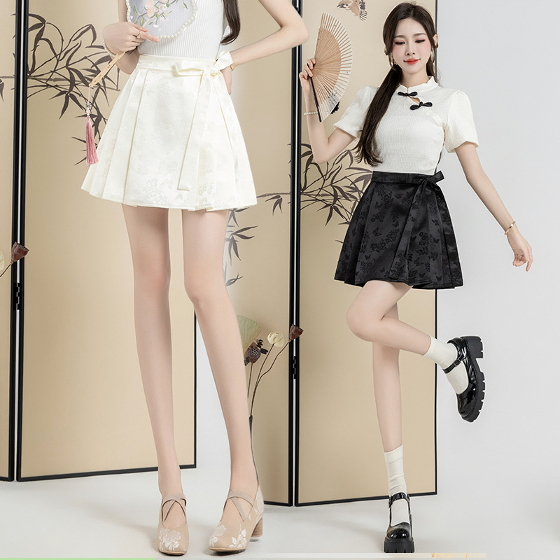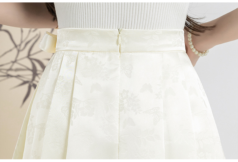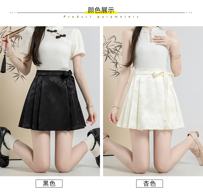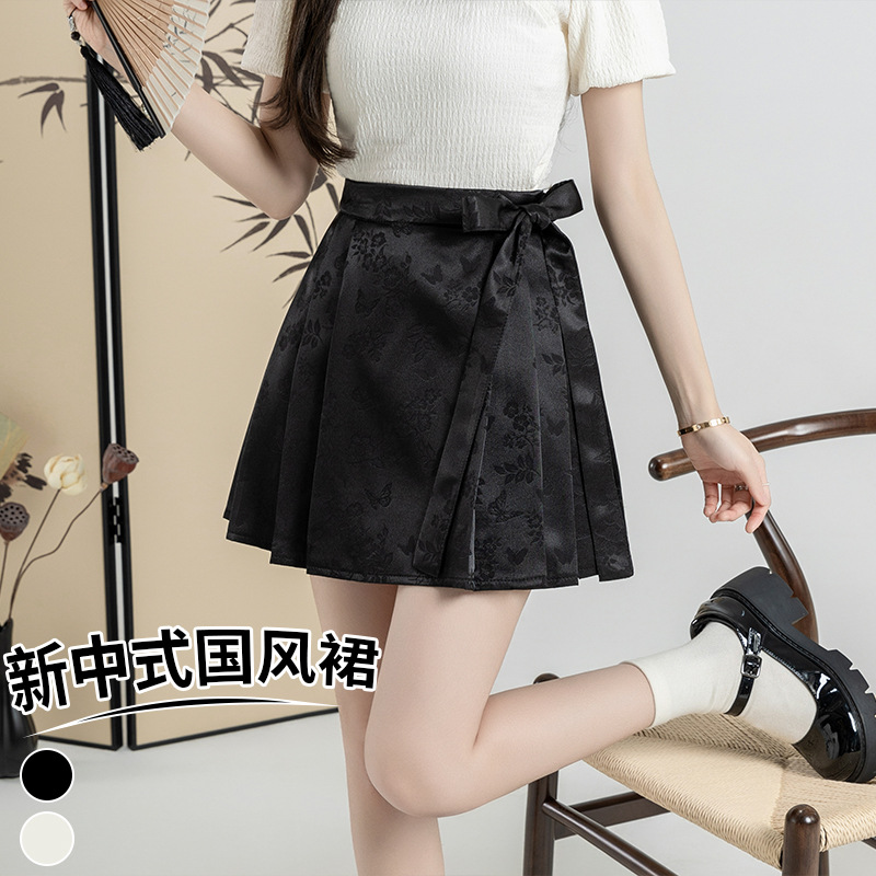 新中式国风蝴蝶结设计感马面裙包臀裙缎面蝴蝶提花半身裙新款