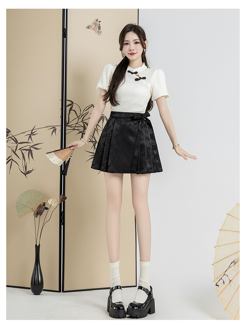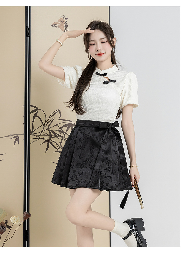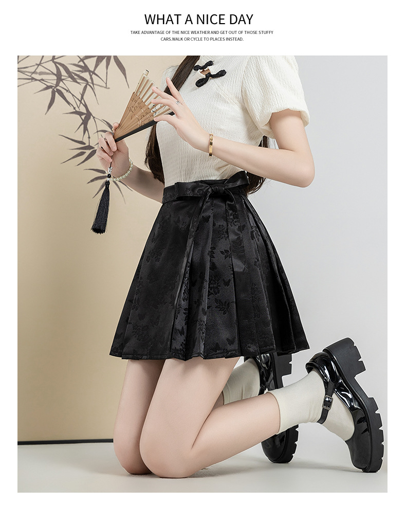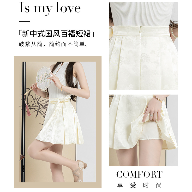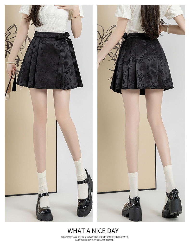 新中式国风蝴蝶结设计感马面裙包臀裙缎面蝴蝶提花半身裙新款