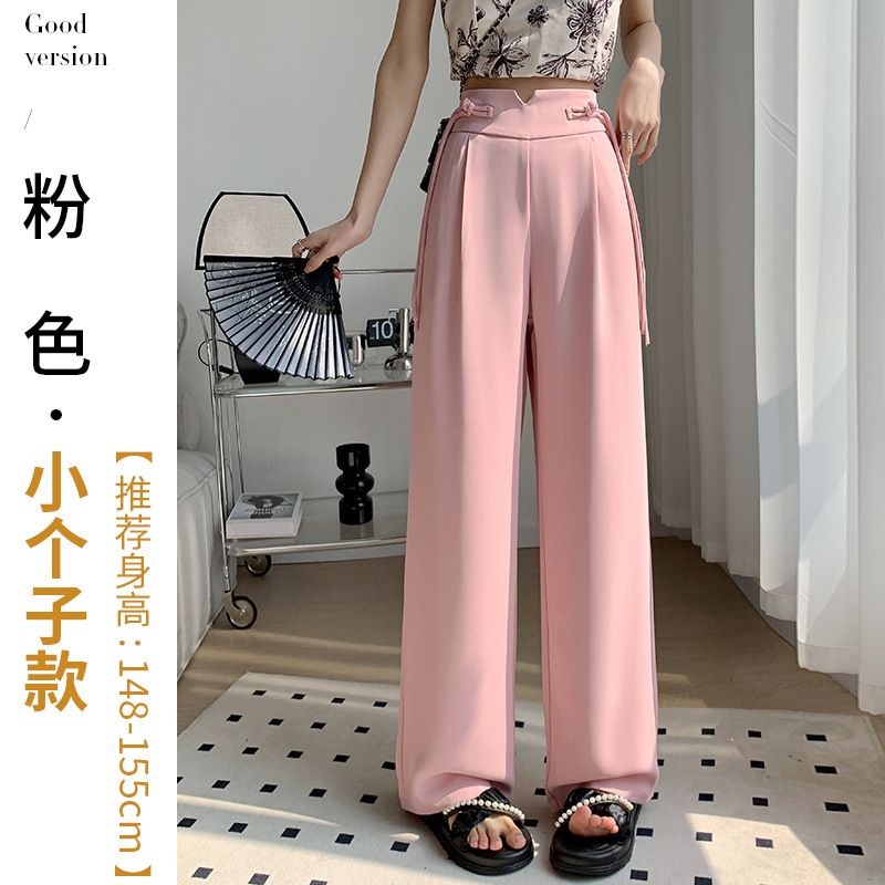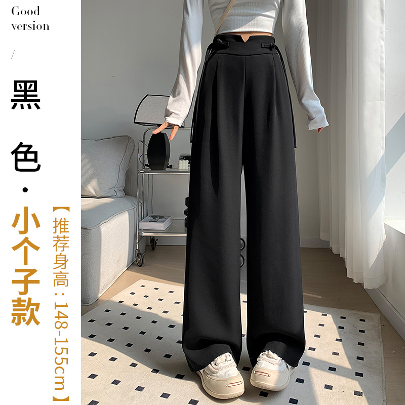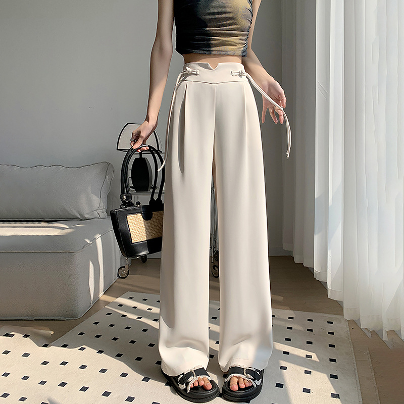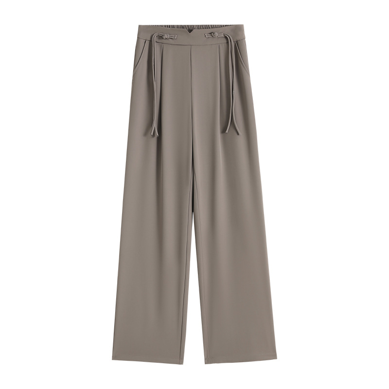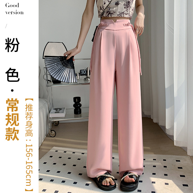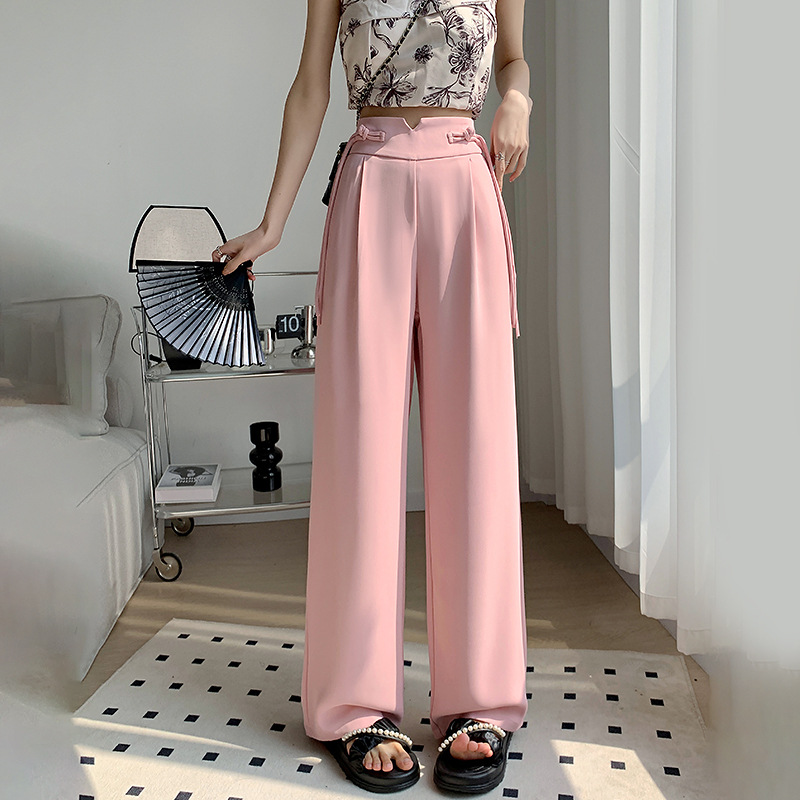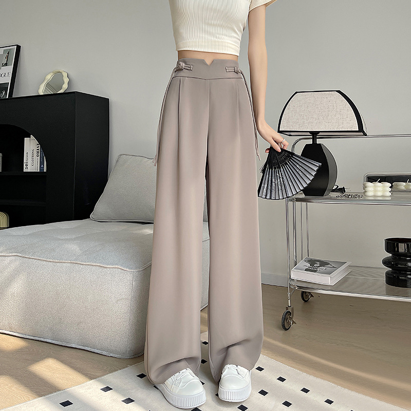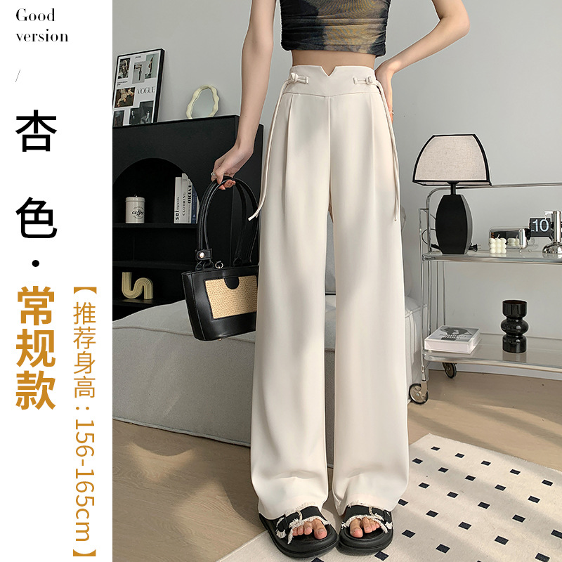 新中式国风西装阔腿裤女春夏新款盘扣显瘦直筒裤休闲拖地裤女