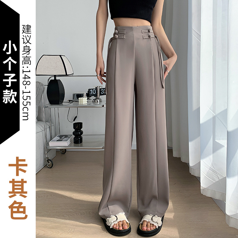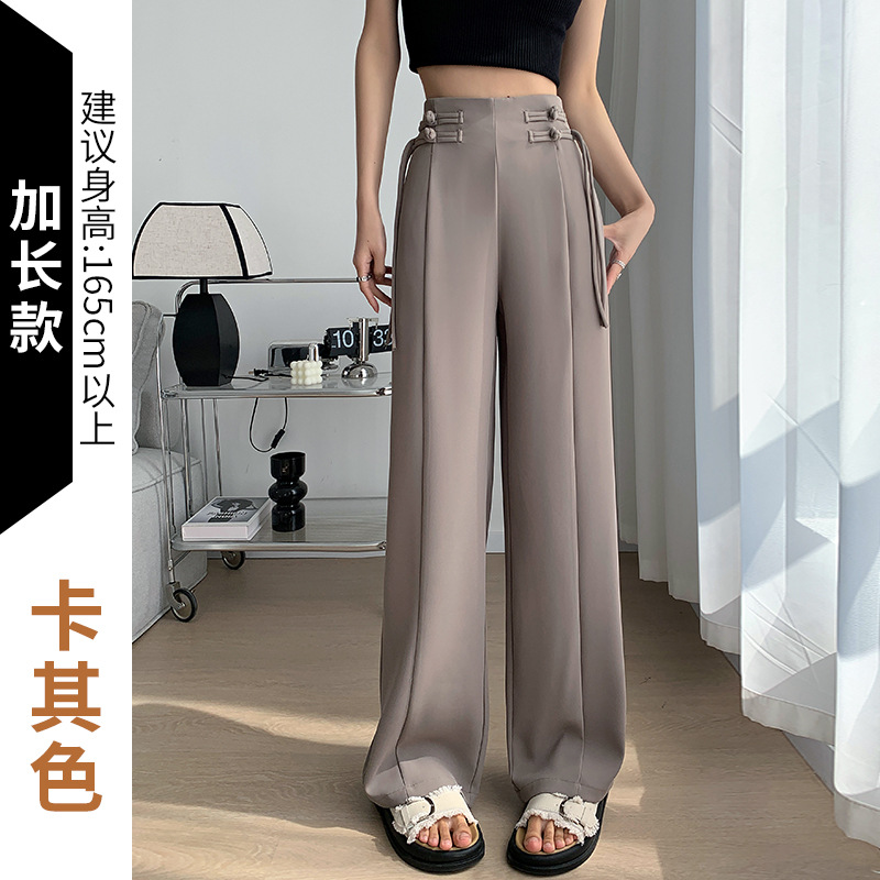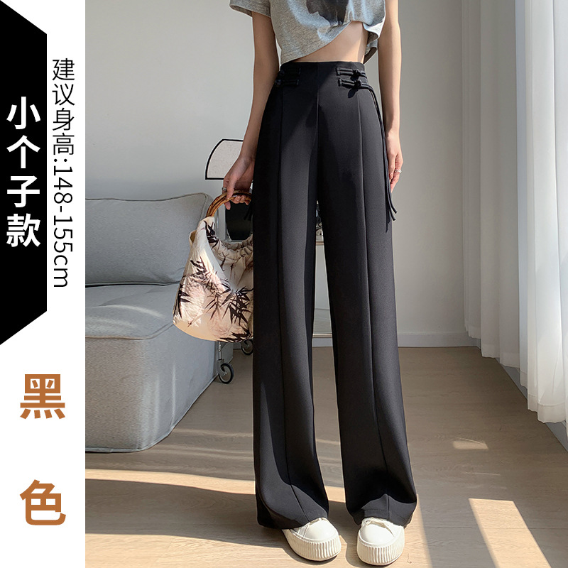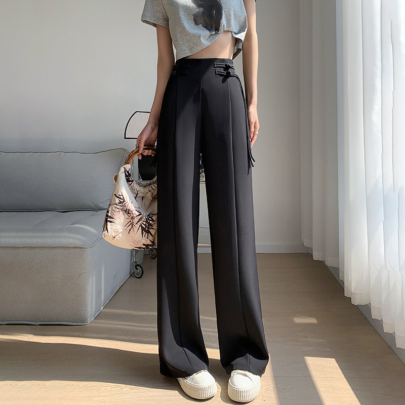 新中式国风盘扣高腰窄版西装阔腿裤女春夏新款休闲直筒拖地裤