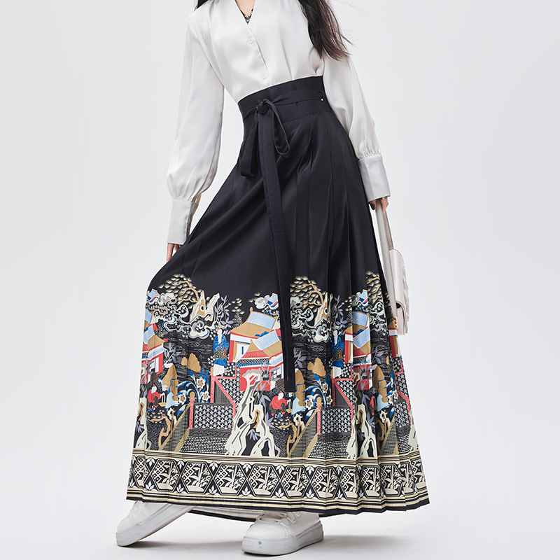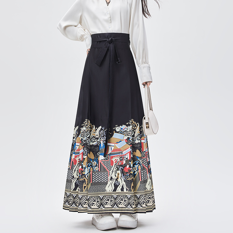 中式国风汉服改良马面裙半身裙女春夏新款女装裙子设计感长裙