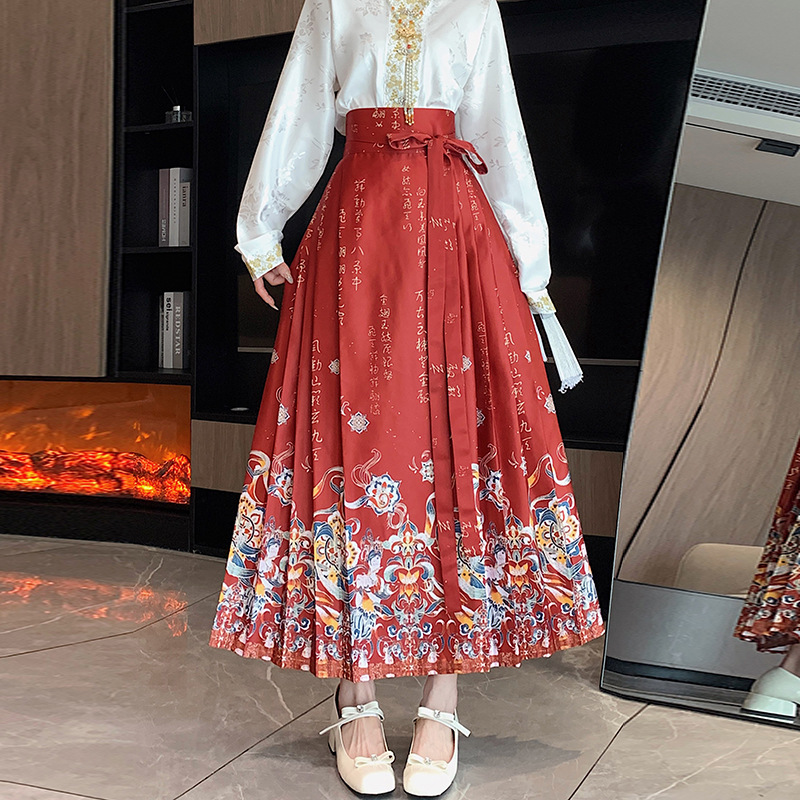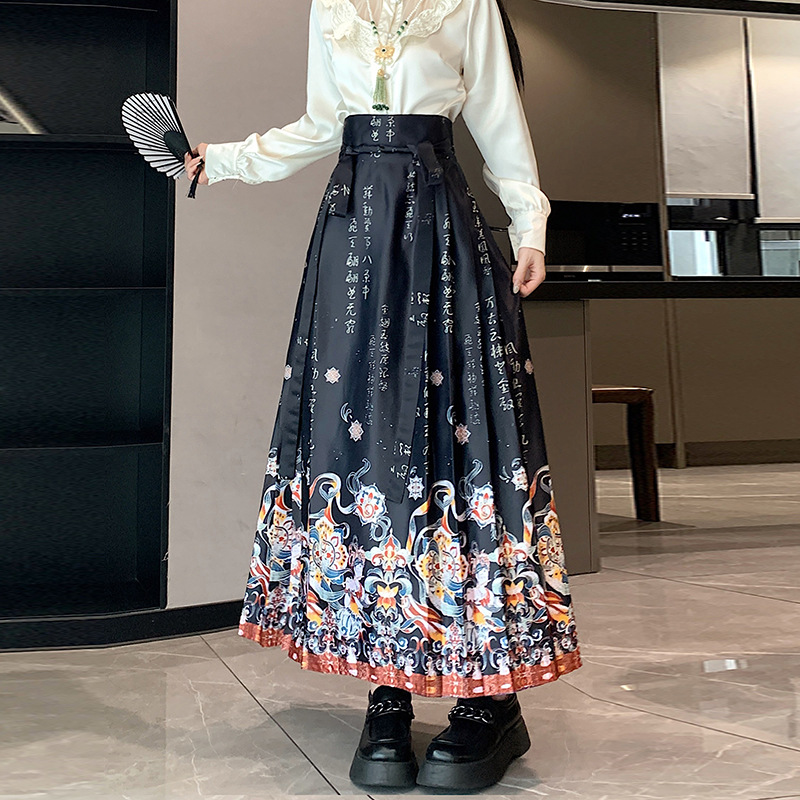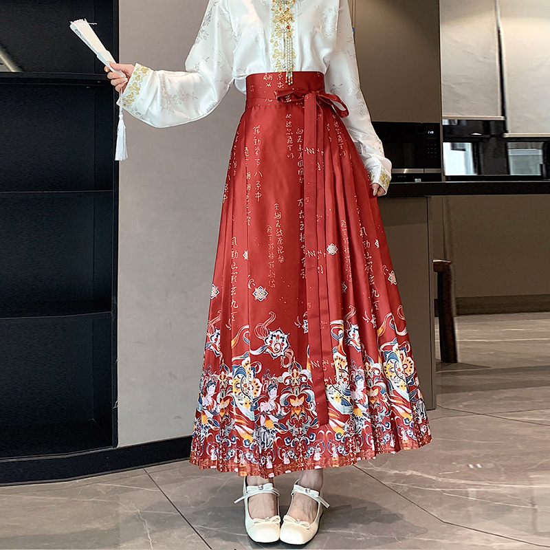 新中式国风马面裙女春夏新款一片式长裙汉服遮胯百褶裙半身裙