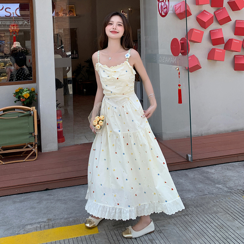 甜美氛围感可爱ins风仙女裙温柔度假刺绣绣花宽松拼接吊带连衣裙
