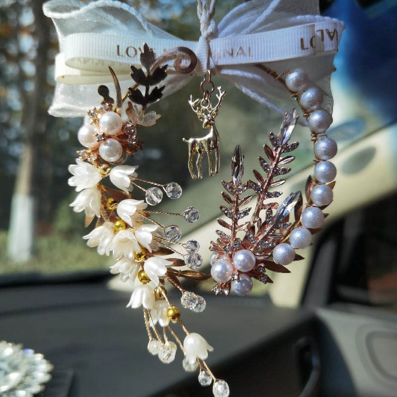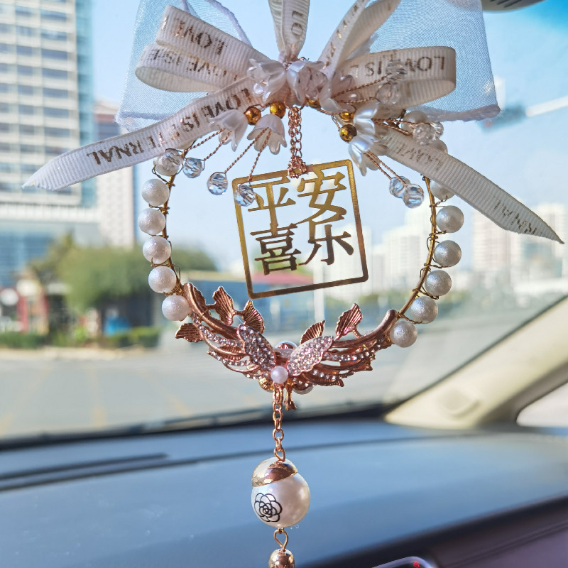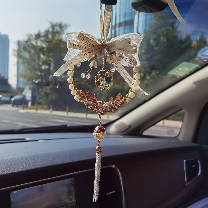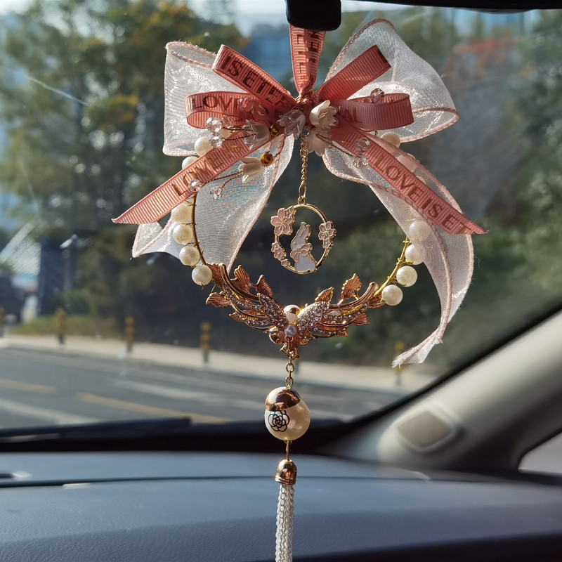 新款汽车挂件创意卡通蝴蝶结车载后视镜吊坠挂饰手工制作汽车挂件