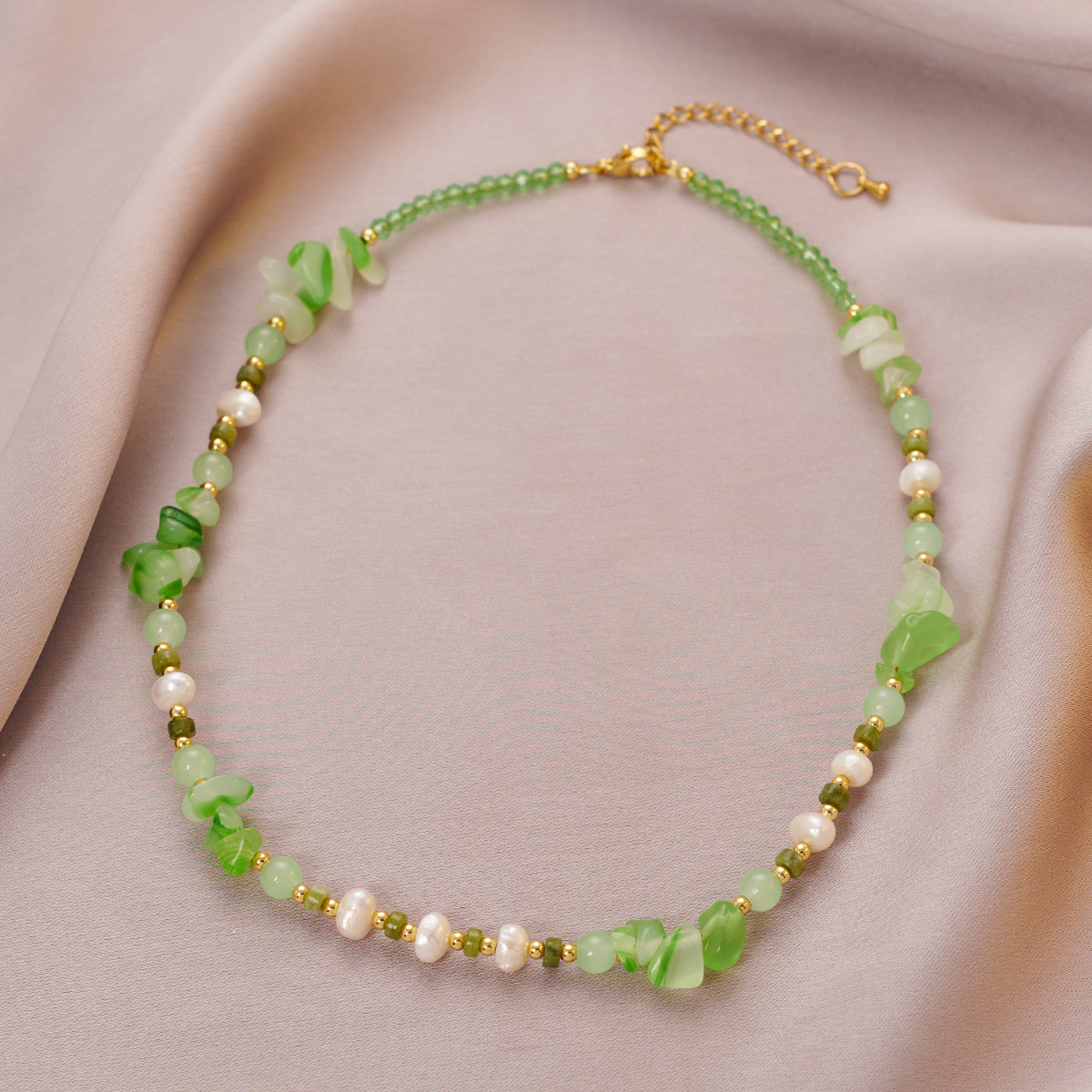 新款天然石时尚绿色米珠串珠百搭项链少女甜美可爱风锁骨手链项饰