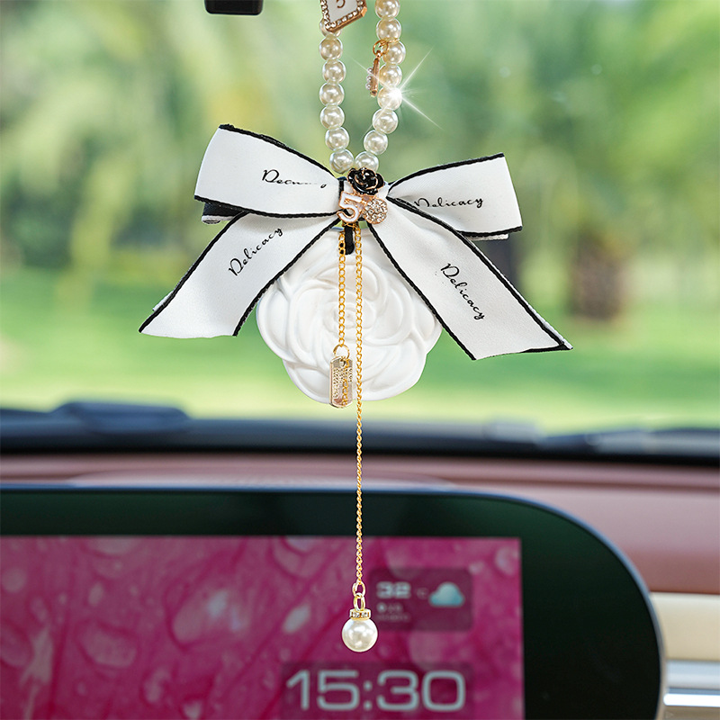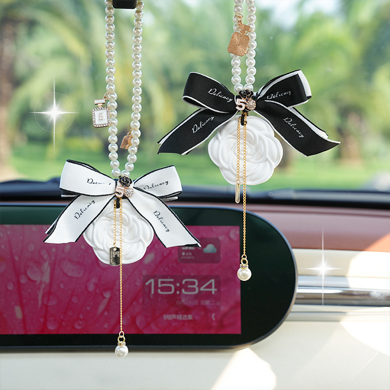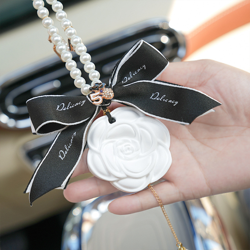 山茶花汽车挂件 扩香石车载香薰后视镜吊坠车挂 轻奢网红汽车挂件