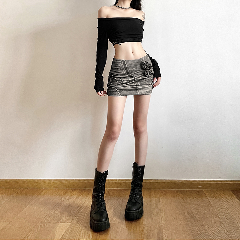 新款夏季性感辣妹风小众个性街头设计感显瘦修身玫瑰短裙女
