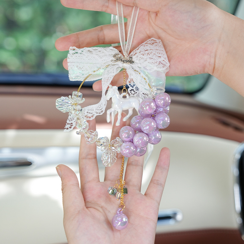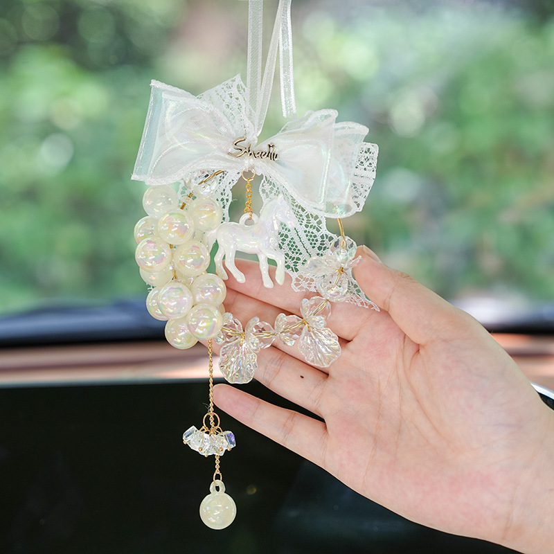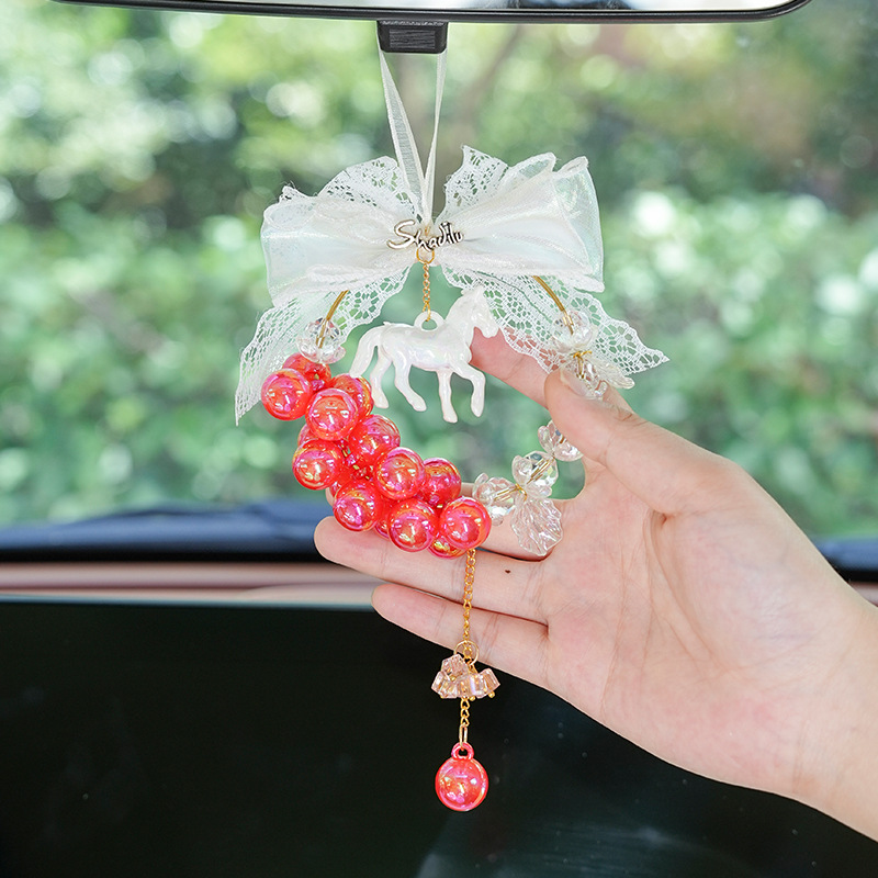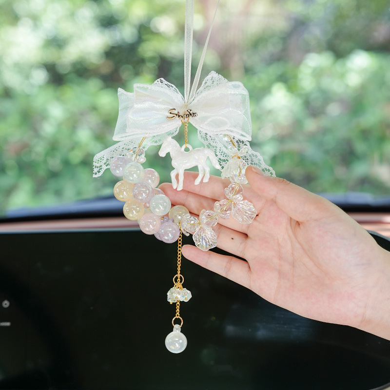 可爱小马汽车挂件 蕾丝车载后视镜装饰吊坠车挂 网红女神汽车用品
