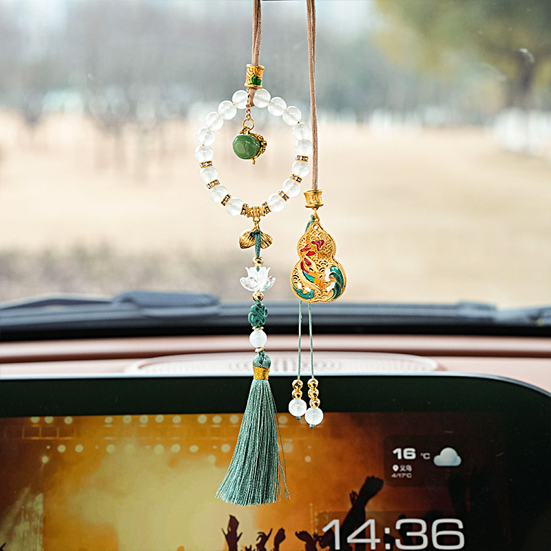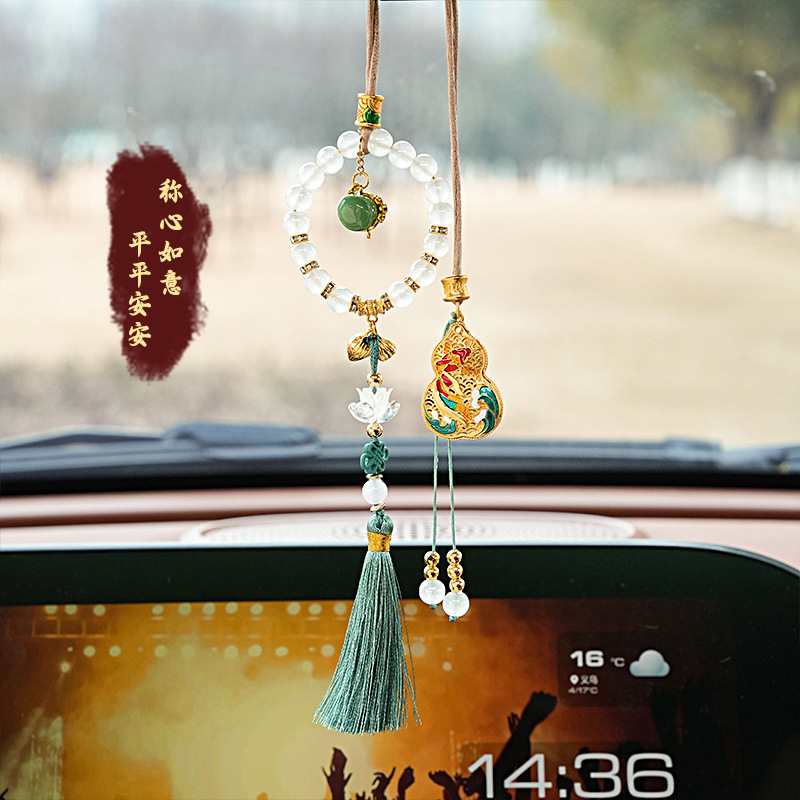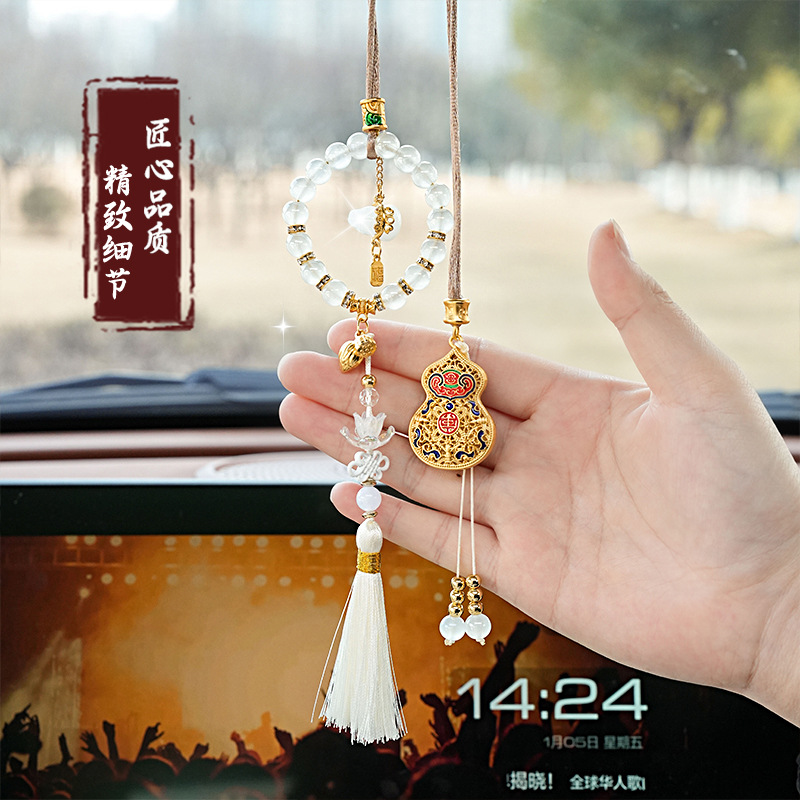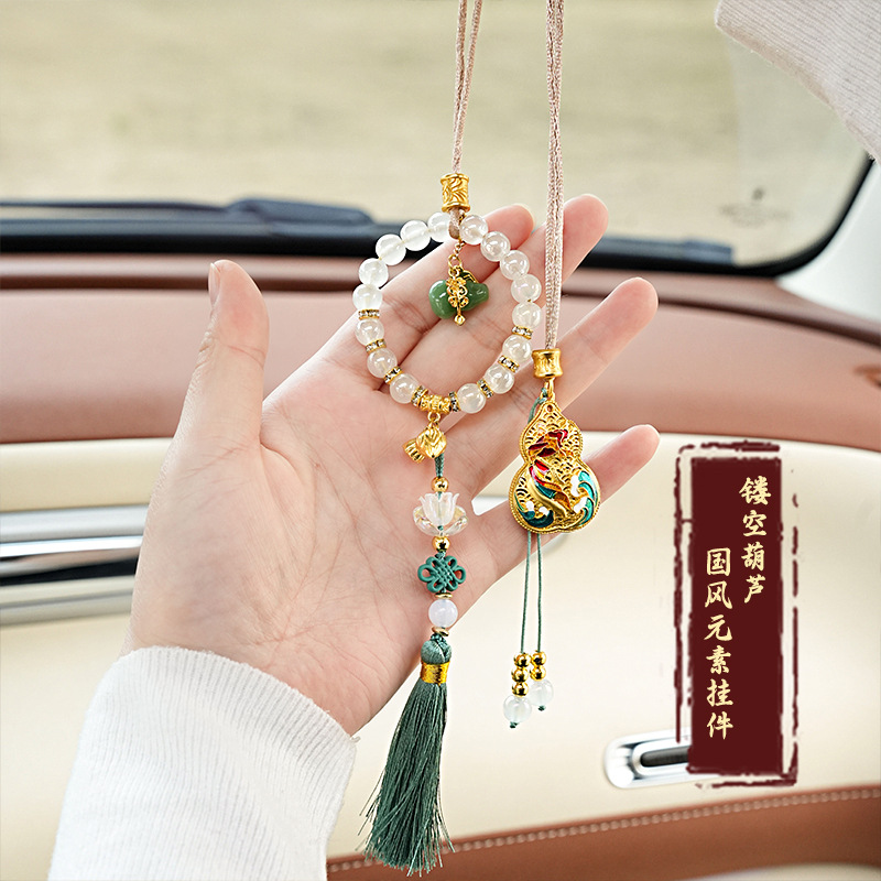 古风汽车挂件 精致圆珠葫芦车载后视镜挂饰 福禄平安流苏车用挂件