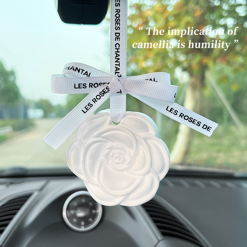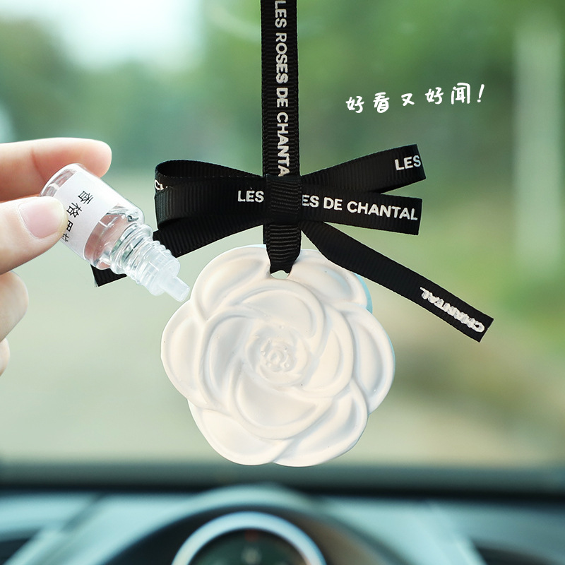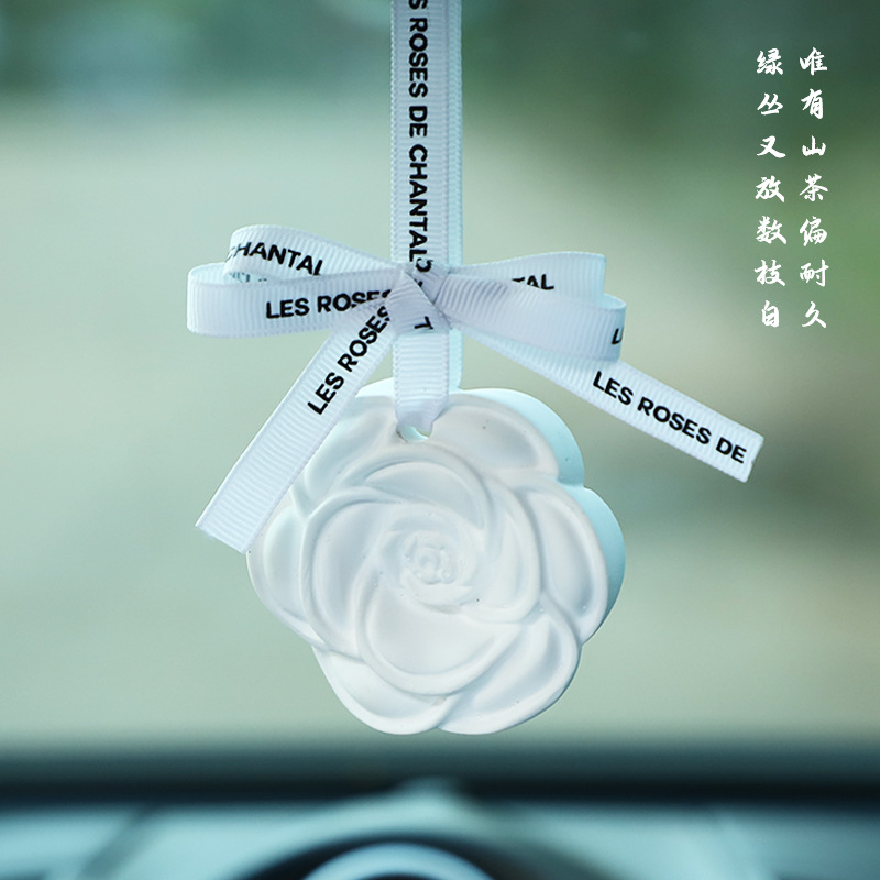 山茶花香薰汽车挂件 创意扩香石车载后视镜车挂件 时尚汽车用品女