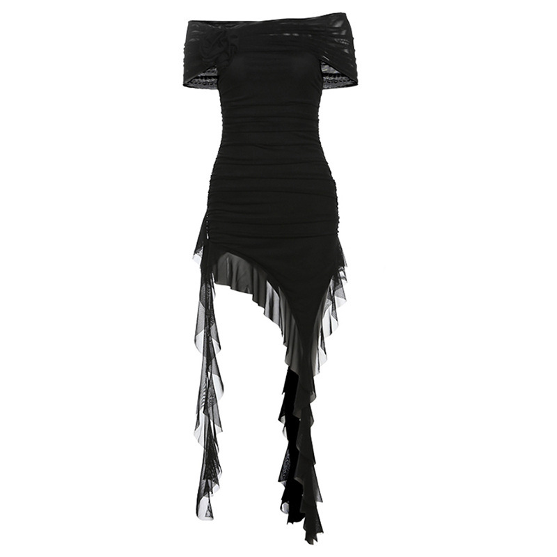 跨境欧美风夏季新款女装纯色修身高腰时尚一字领抹胸连衣裙
