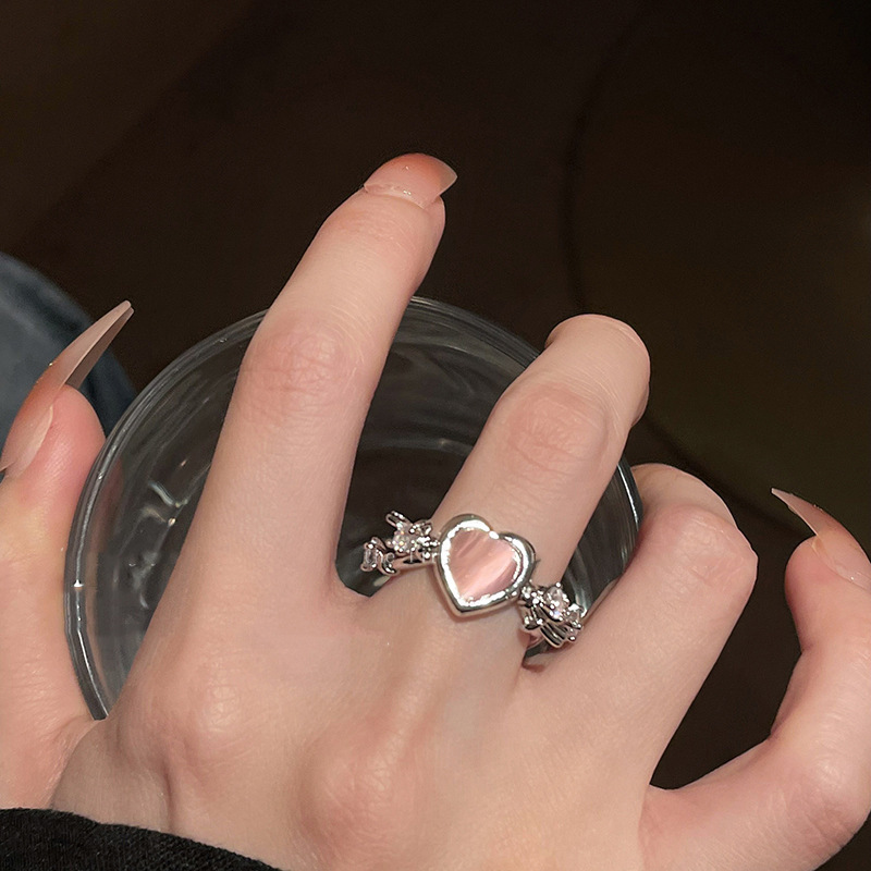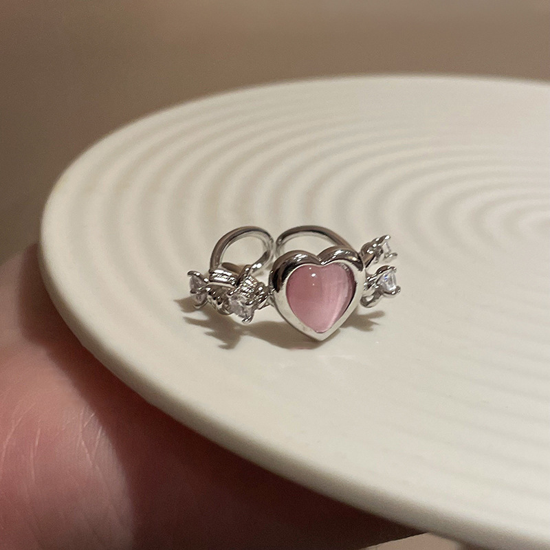 粉色爱心戒指女小众设计高级感少女粉钻轻奢独特可调节时尚个性潮