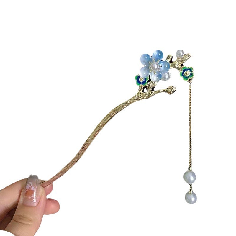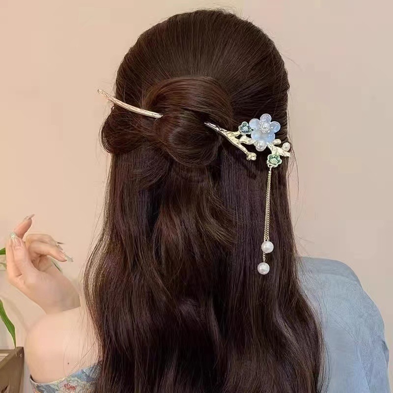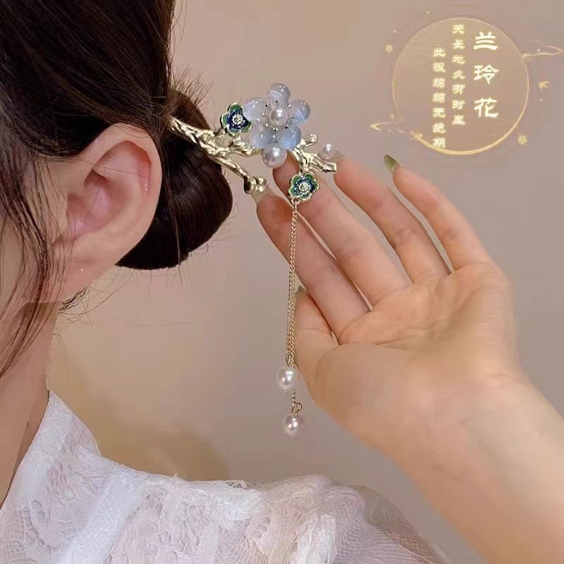 花朵发簪高级中式盘发发钗汉服头饰旗袍簪子古风流苏步摇盘发簪