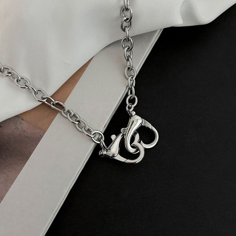 辣妹风~~金属冷淡风简约几何爱心项链ins风设计感网红气质个性锁