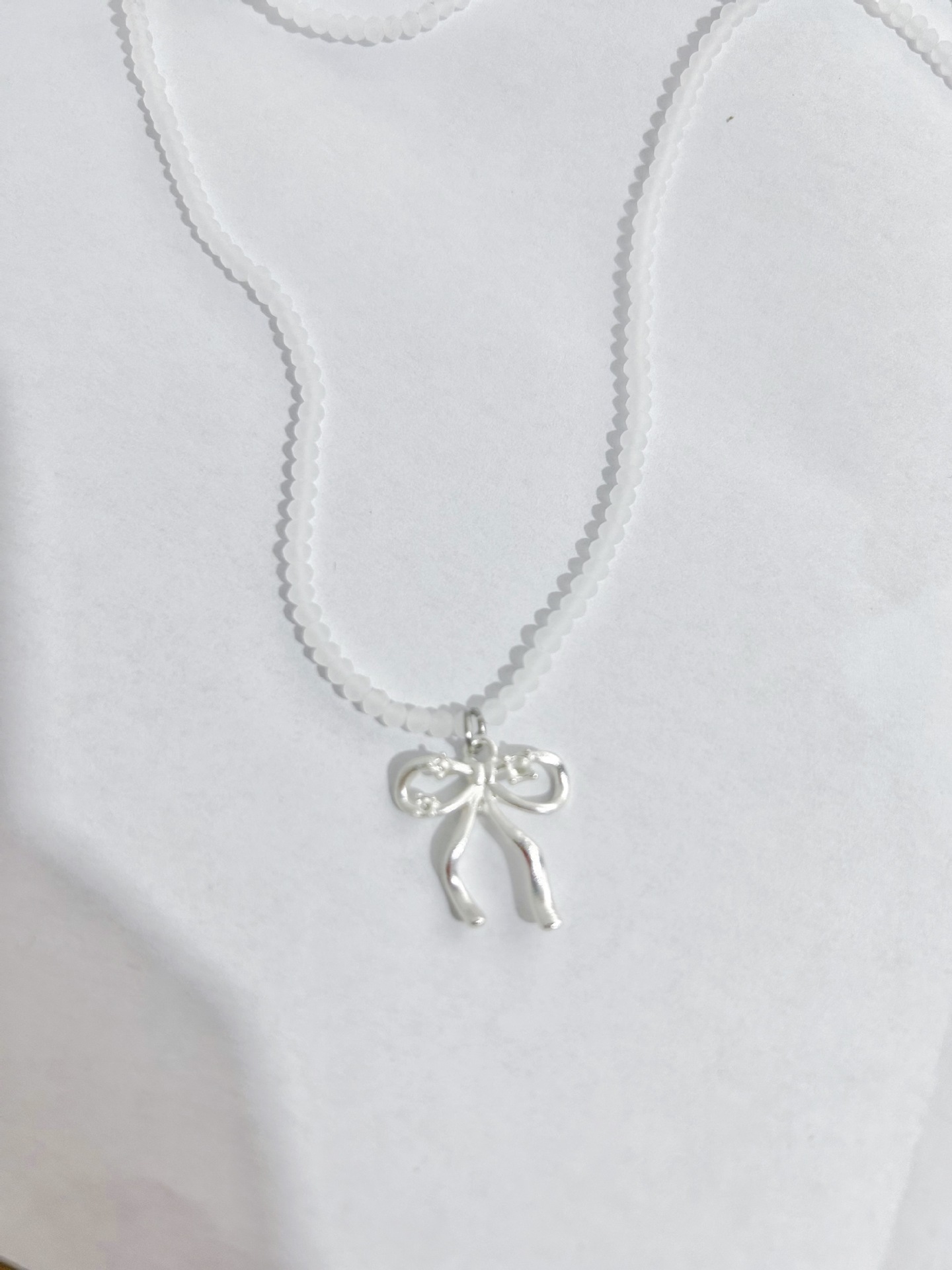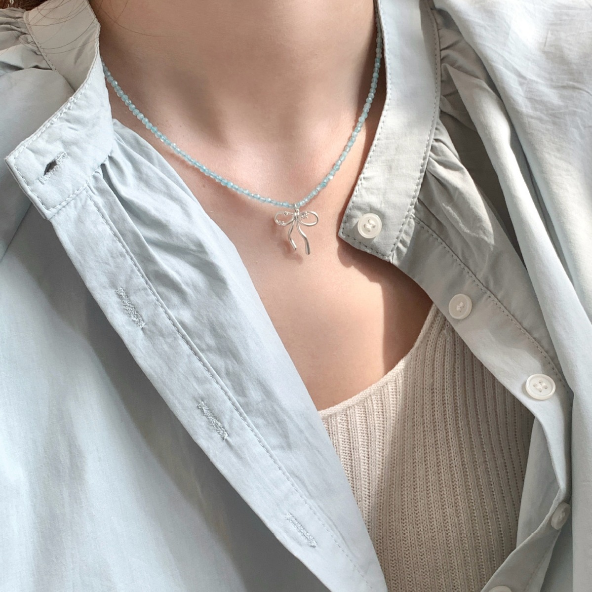 海盐之夏蝴蝶结水晶串珠项链多巴胺糖果春夏气质叠戴蝴蝶结锁骨链