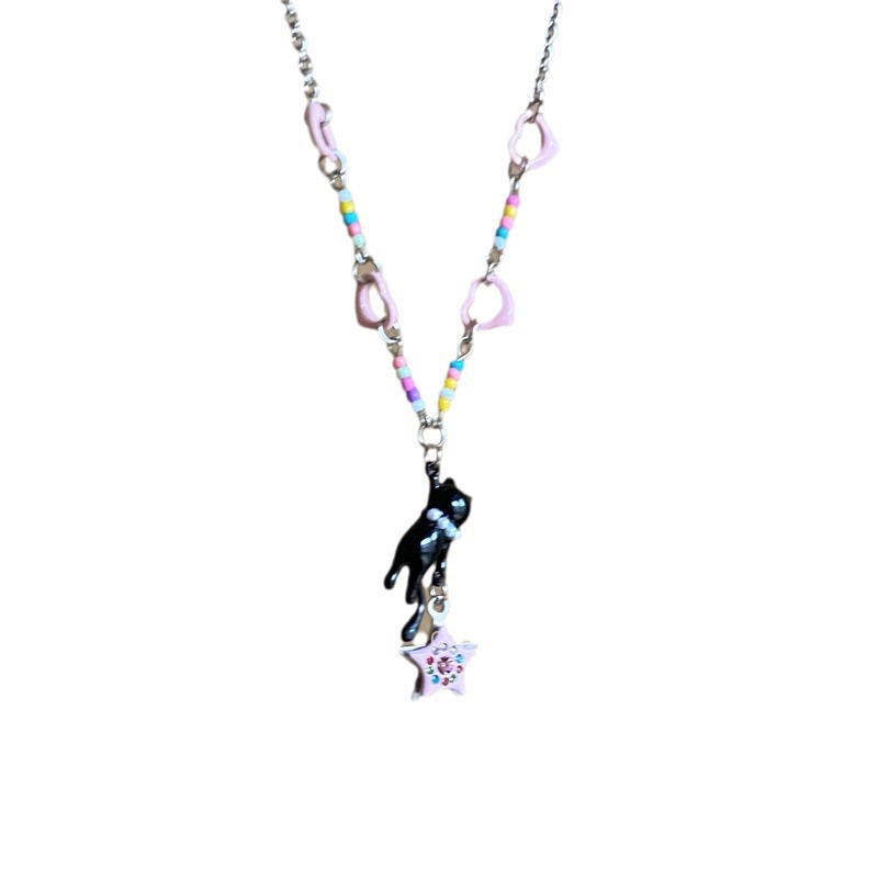 小猫粉色星星吊坠项链y2k辣妹可爱百搭设计感甜酷锁骨链