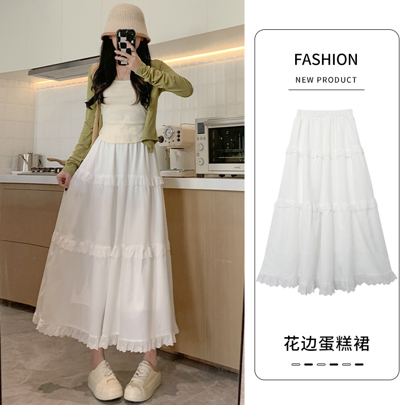 白色蛋糕裙半身裙女春夏新款高腰显瘦蕾丝温柔风长裙A字伞裙
