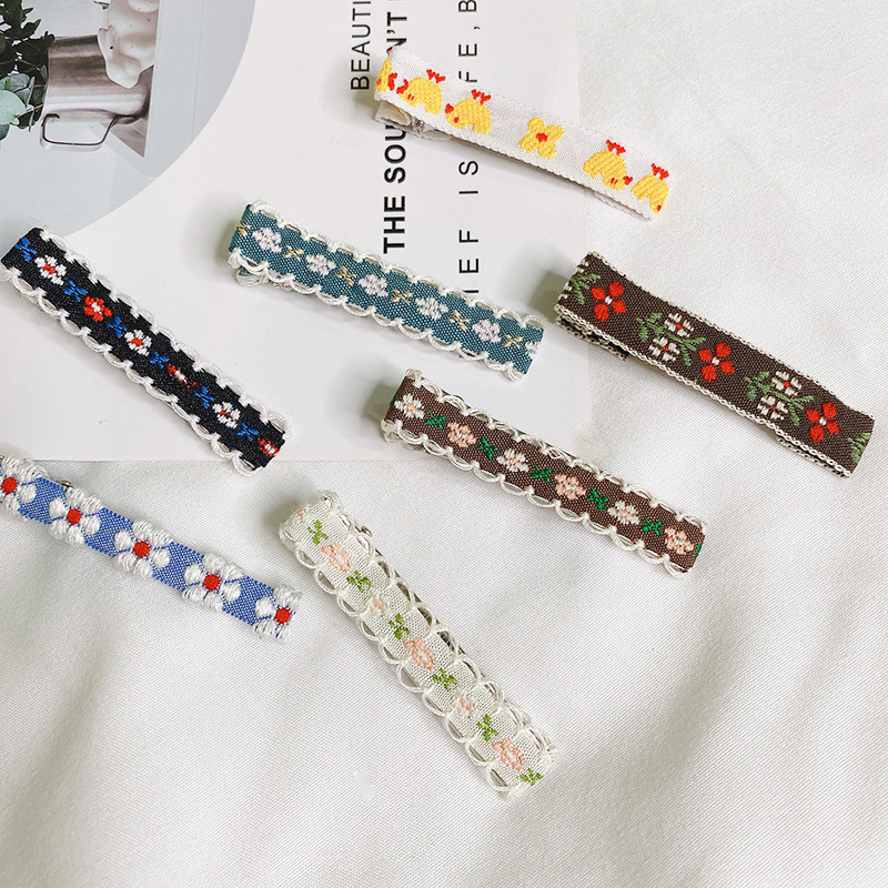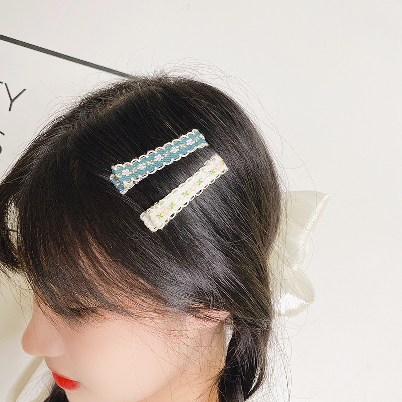 新款少女发夹~春日上新刺绣花朵花边发卡ins韩国网红夹子头饰女