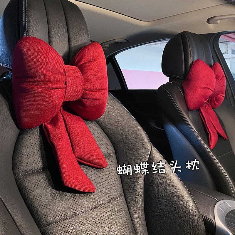 汽车头枕护颈枕蝴蝶结座椅颈椎枕一对车载枕头靠颈枕车枕