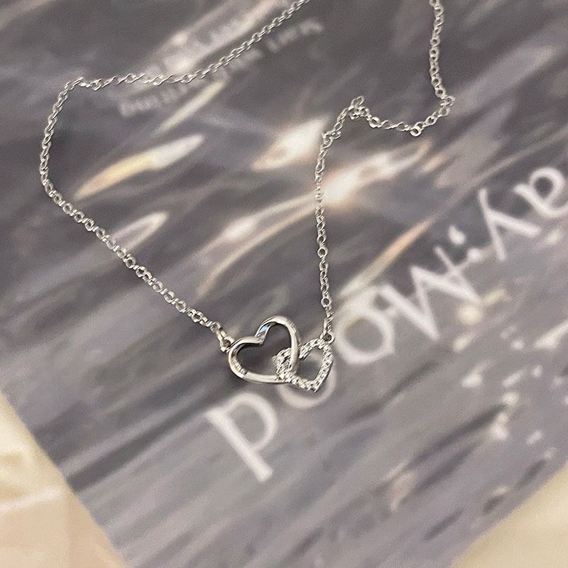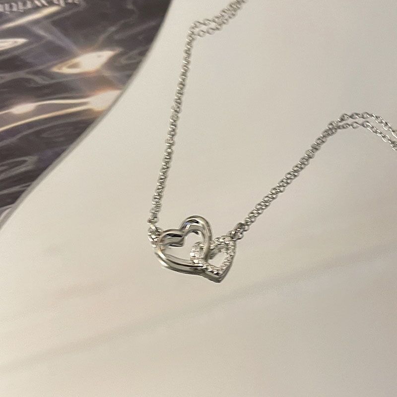 双环爱心锆石项链女夏轻奢小众设计感网红配饰韩国温柔甜美锁骨链