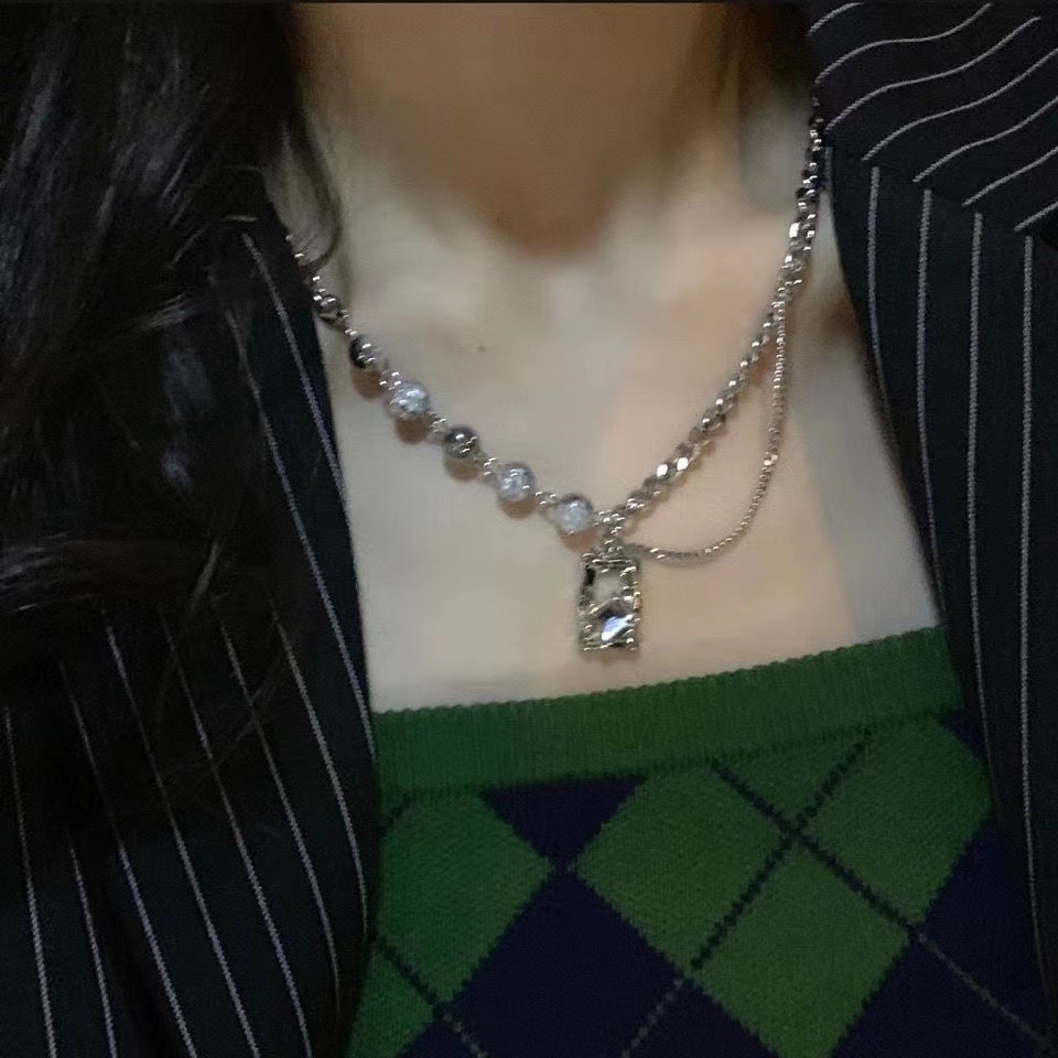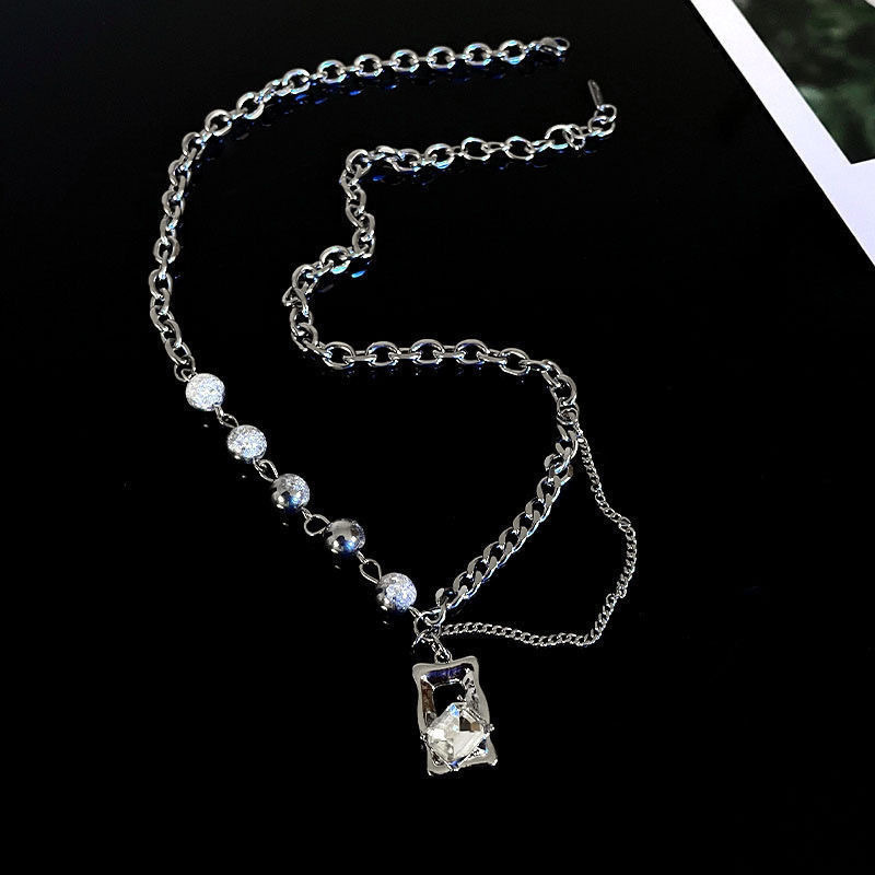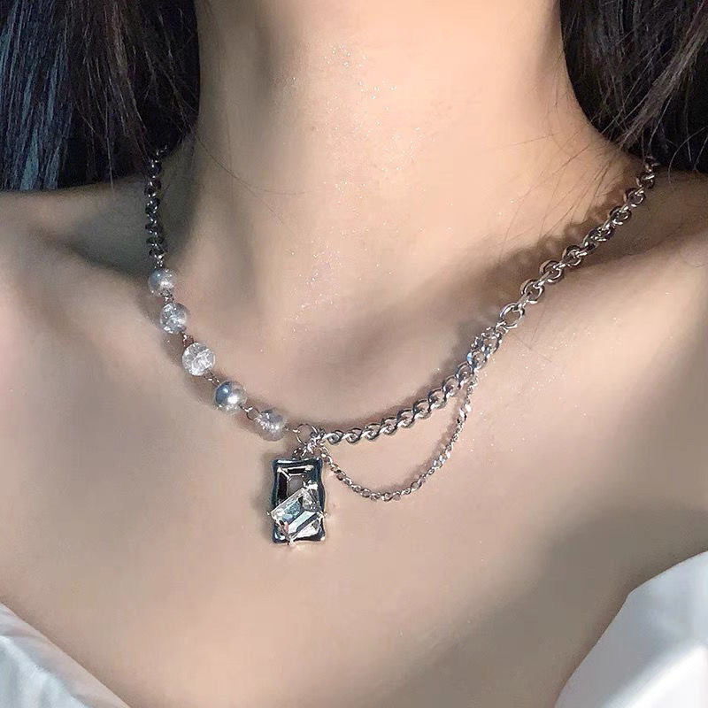 冰裂珠方块水钻项链女嘻哈时尚潮流饰品酷个性小众设计感配饰ins