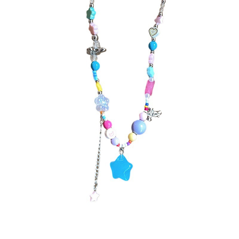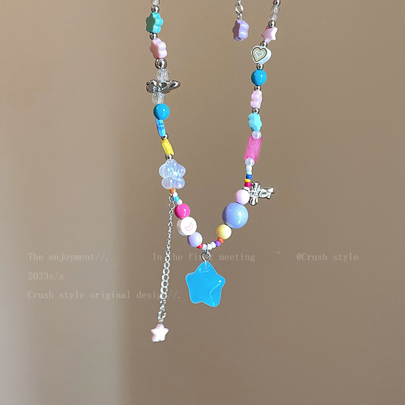 夏季新款多巴胺彩色串珠五角星项链女可爱少女百搭小众锁骨链配饰