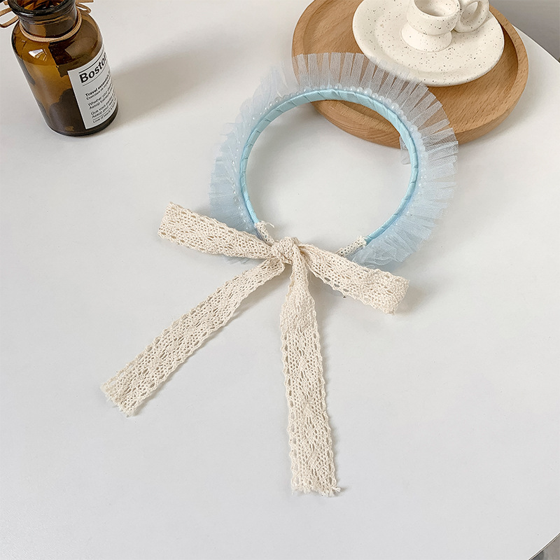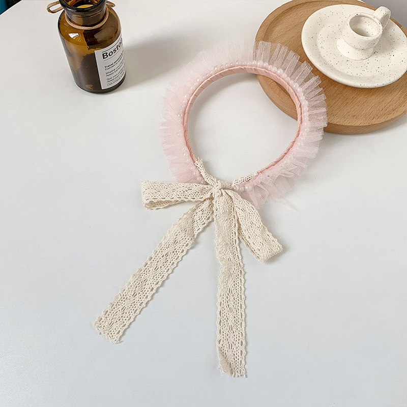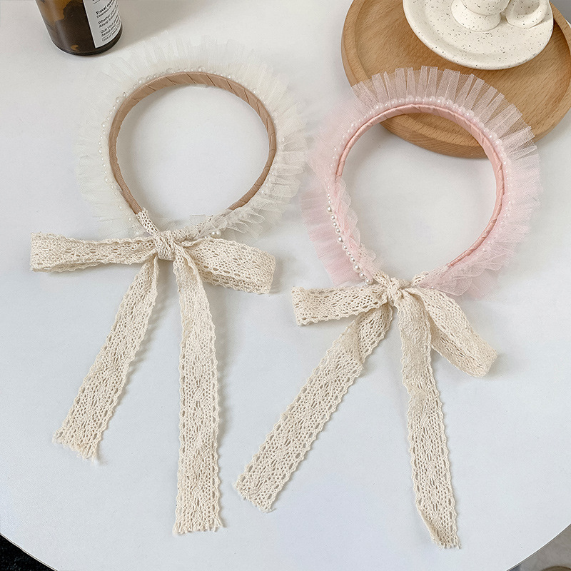 珍珠飘带发箍韩国网红不伤头新款公主绑双马尾头箍女童蝴蝶结头饰