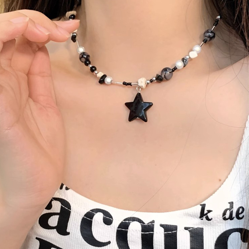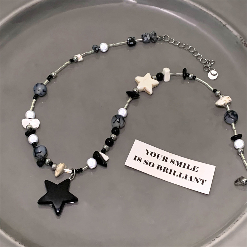 星星串珠项链黑色系高级感可爱甜酷锁骨链多巴胺配饰小众设计百搭