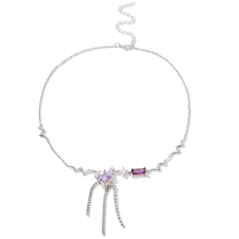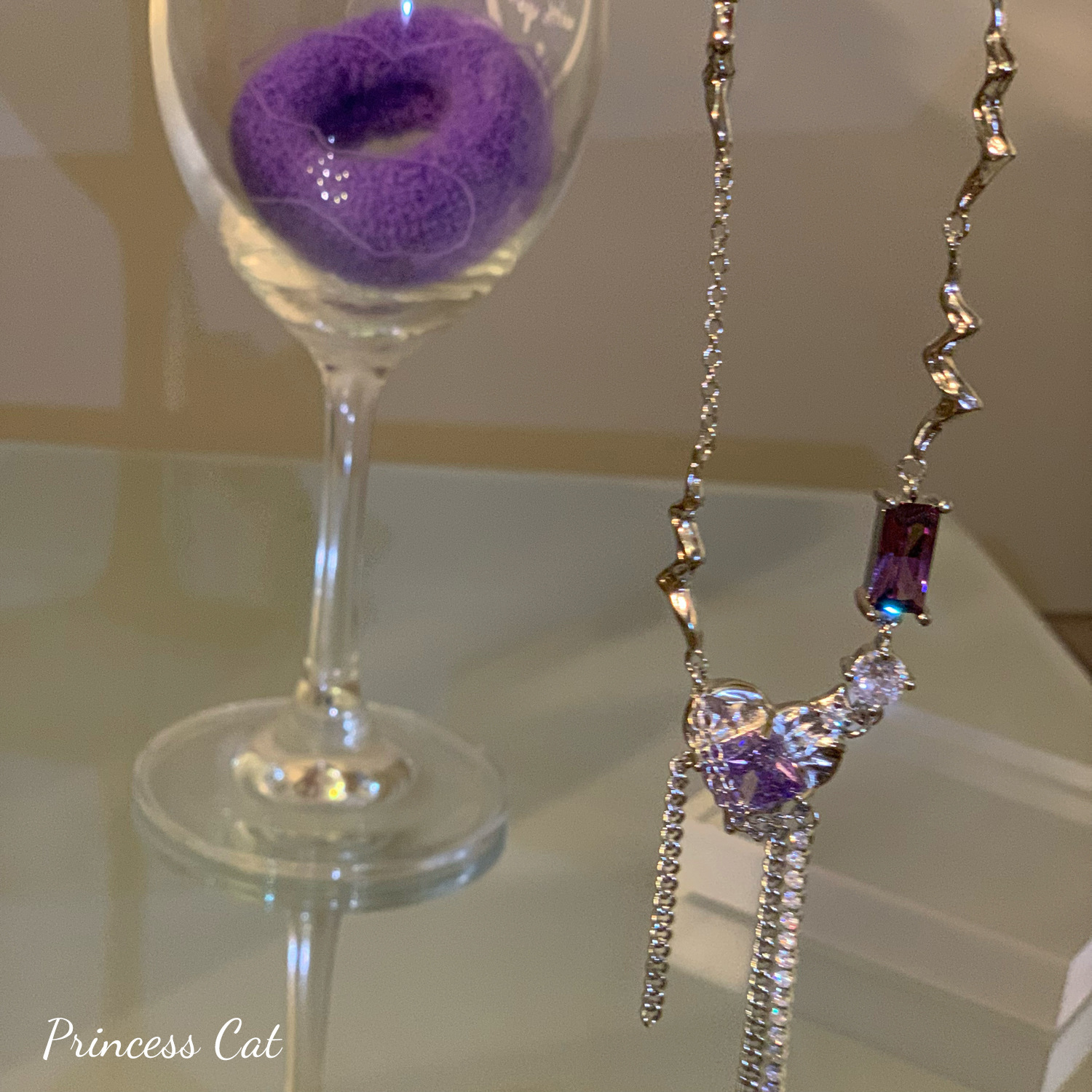 夏季纯欲爱心流苏项链女设计感小众甜酷冷淡风紫色锁骨链颈链