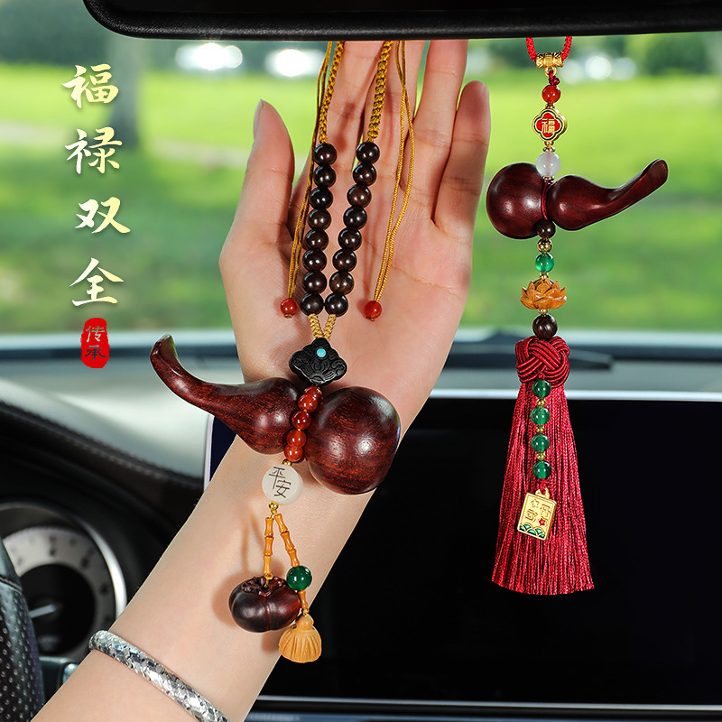 车载挂饰高档红檀葫芦一路平安符创意后视镜车挂汽车内饰