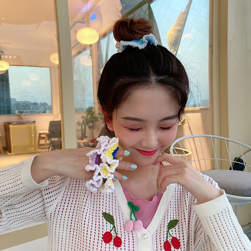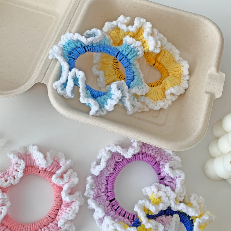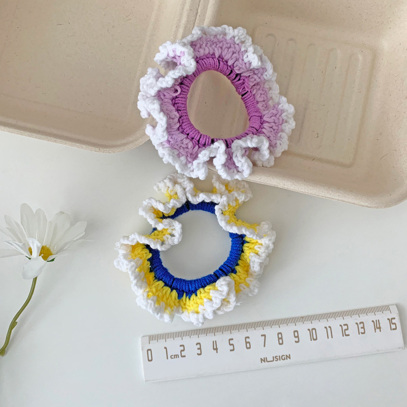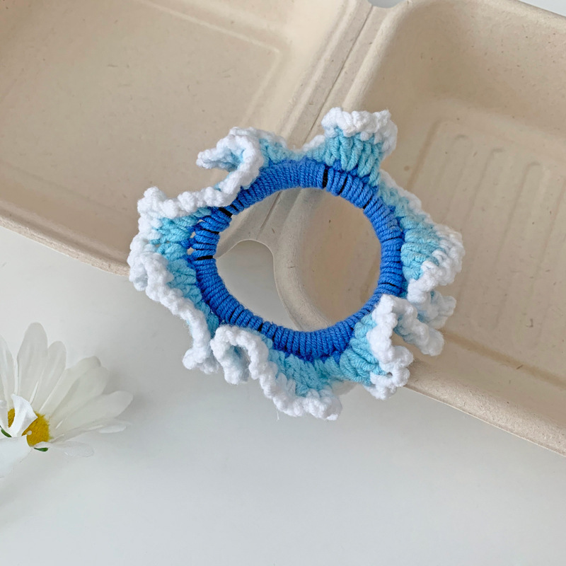 秋冬新款发饰复古拼色毛线波浪发圈手工编织发绳头绳丸子头大肠圈
